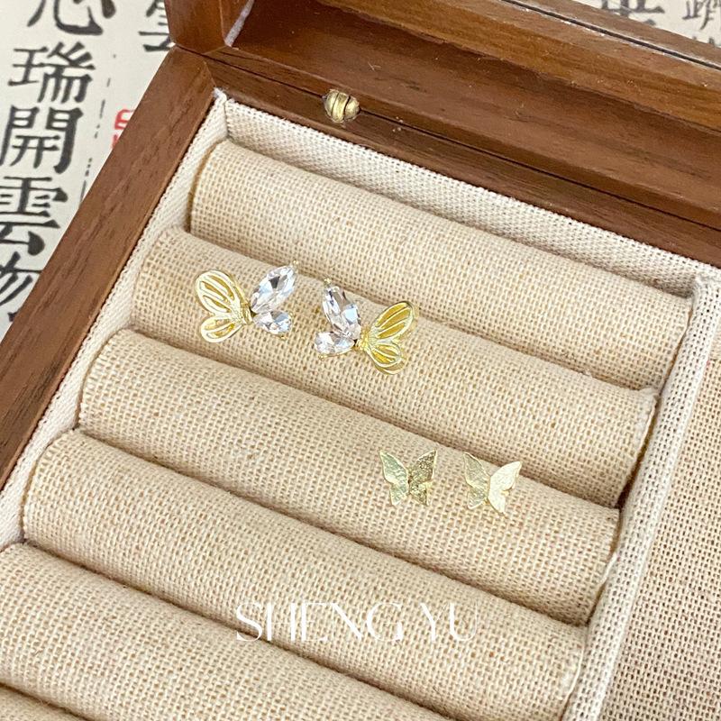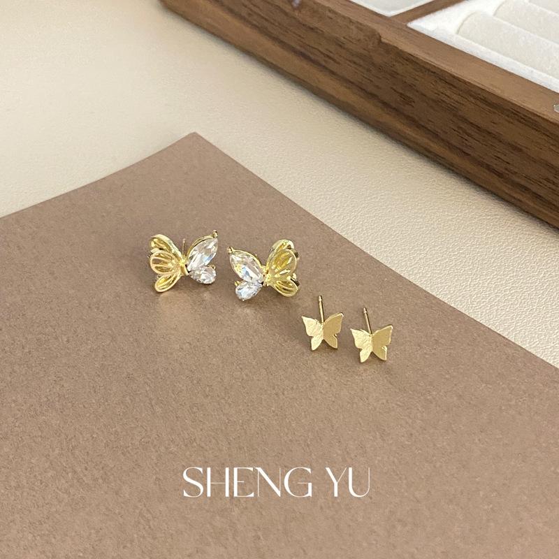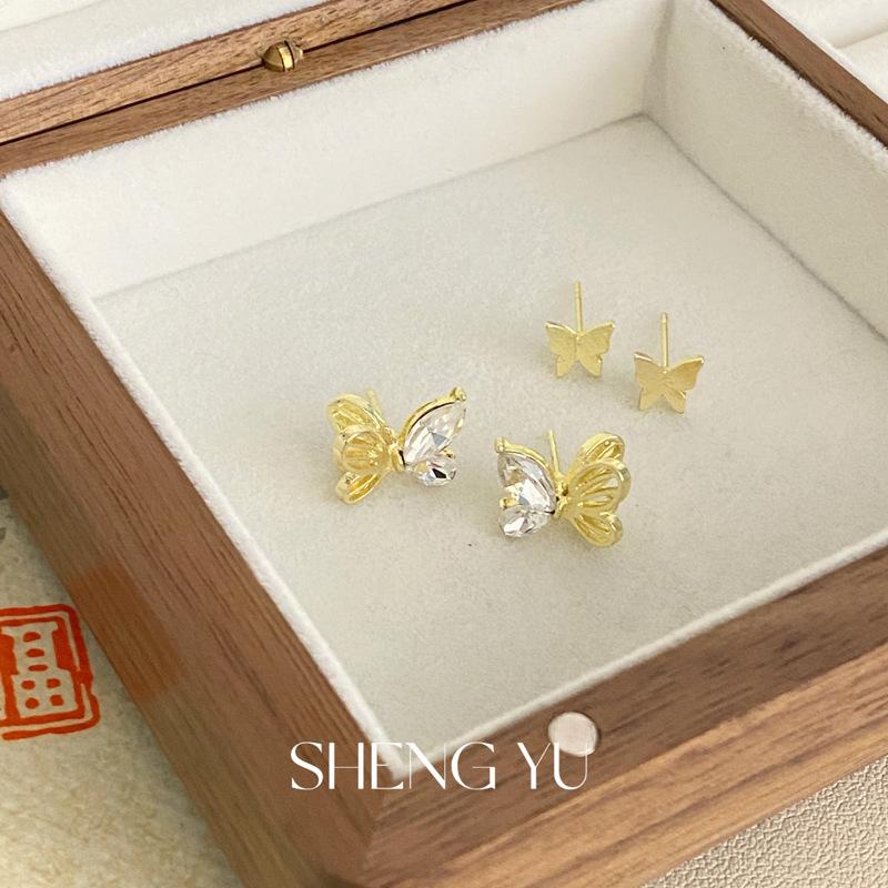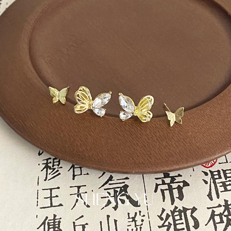 Compra Exquisitos y Pequeños Aretes de Diamante de Mariposa con Costuras Caladas de Estilo Coreano, Aretes Elegantes de Moda Metálicos para Mujer para Uso Diario Versátiles al por mayor en Joom.pro