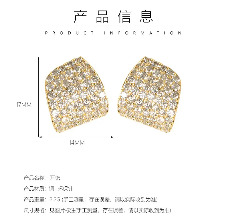 Amazon Pendientes de Tachuela con Circonita de Diamante Completo Transfronterizos para Mujer, Lujo Ligero, Exquisitos, Elegantes, Estilo Socialité, Pendientes de Gama Alta