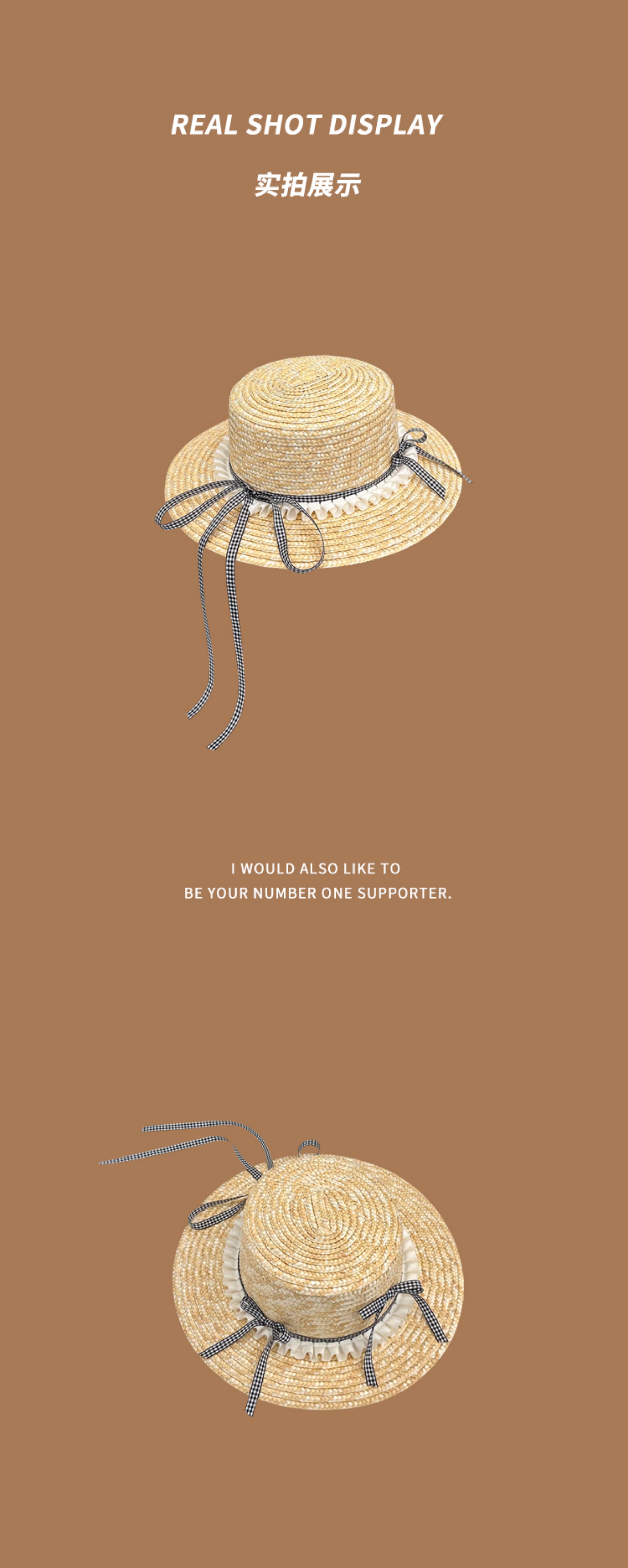 Compra Sombrero de paja con parte superior plana y lazo estilo japonés para mujer, sombrero para playa, viajes, sombrilla, sombrero de copa que combina con todo, moderno al por mayor en Joom.pro