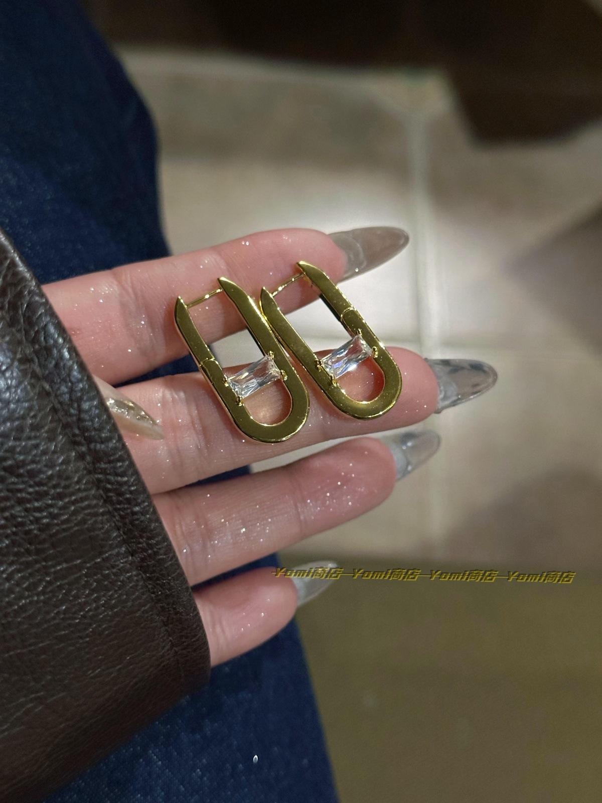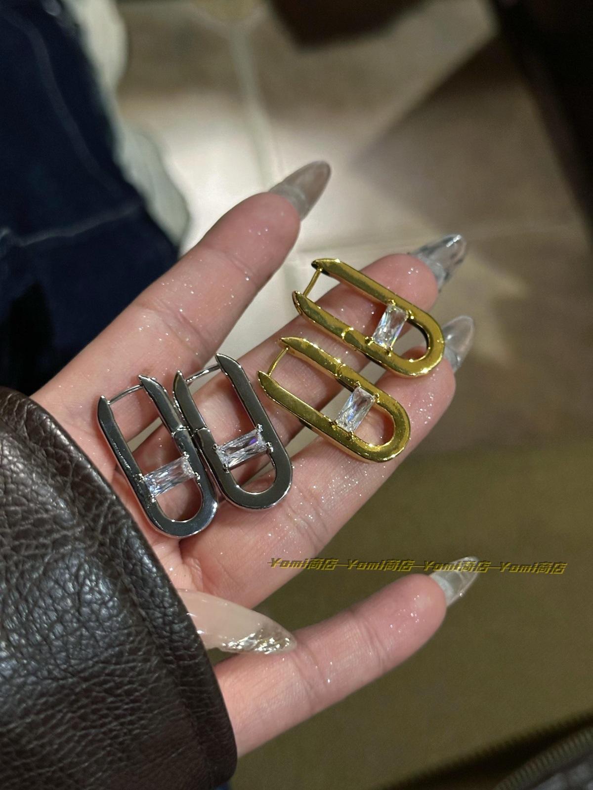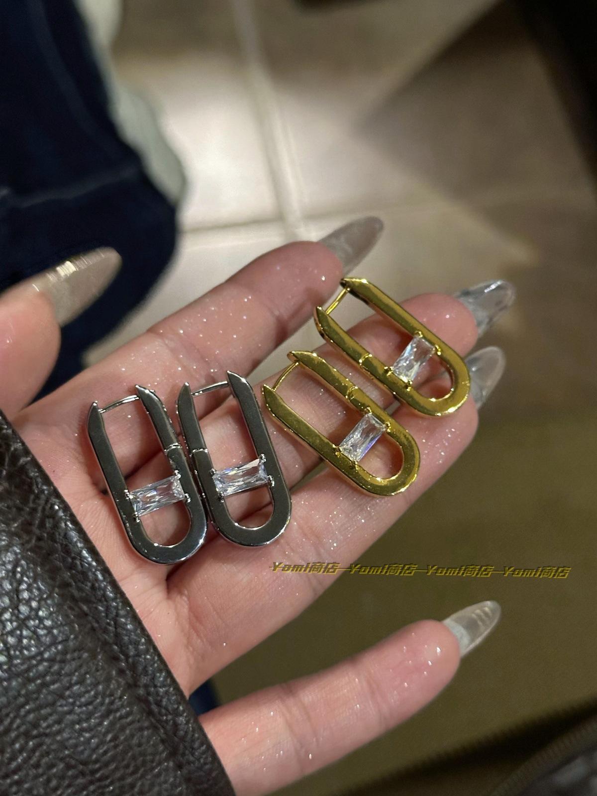 2025 Nuevos pendientes de metal europeos y americanos para mujer, moda simple, pendientes de circonita con incrustaciones únicos, pendientes de gran sentido, tendencia al por mayor