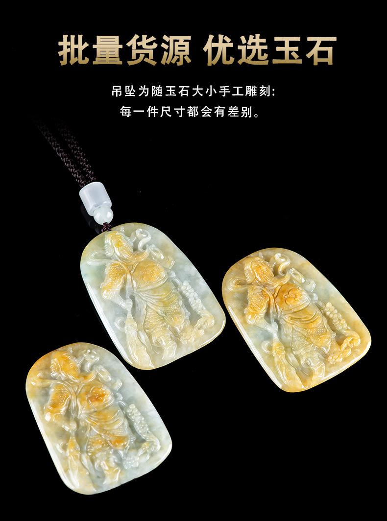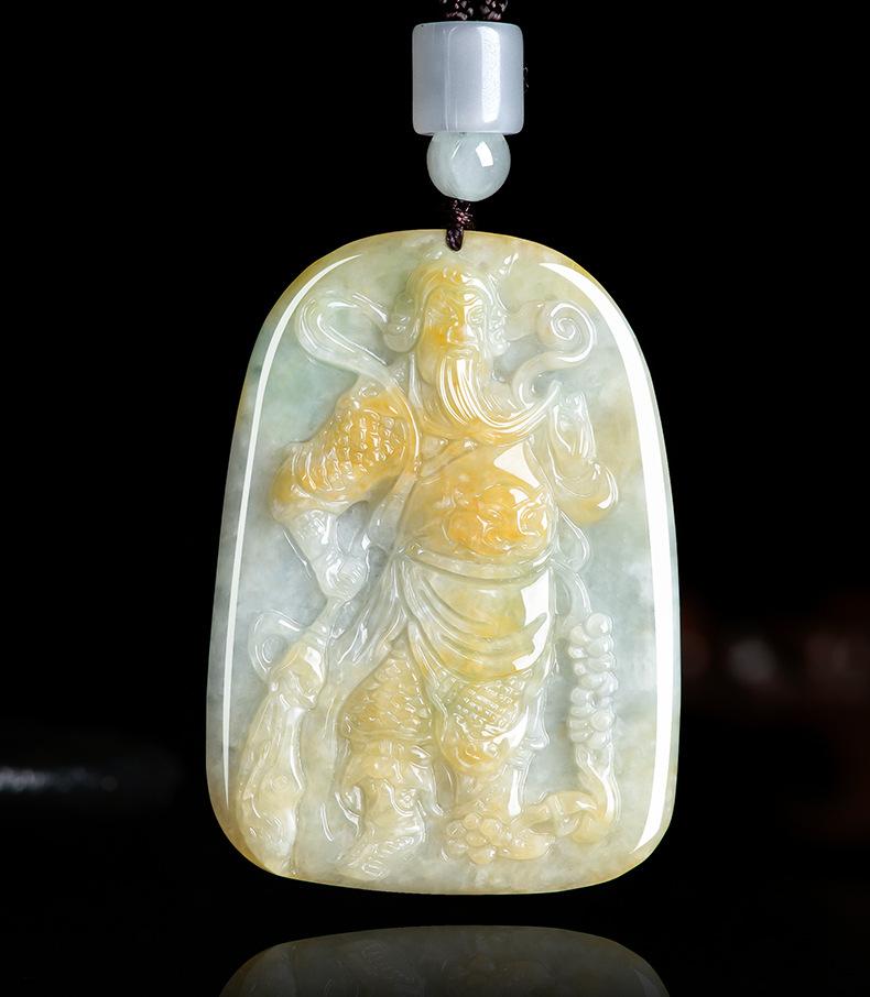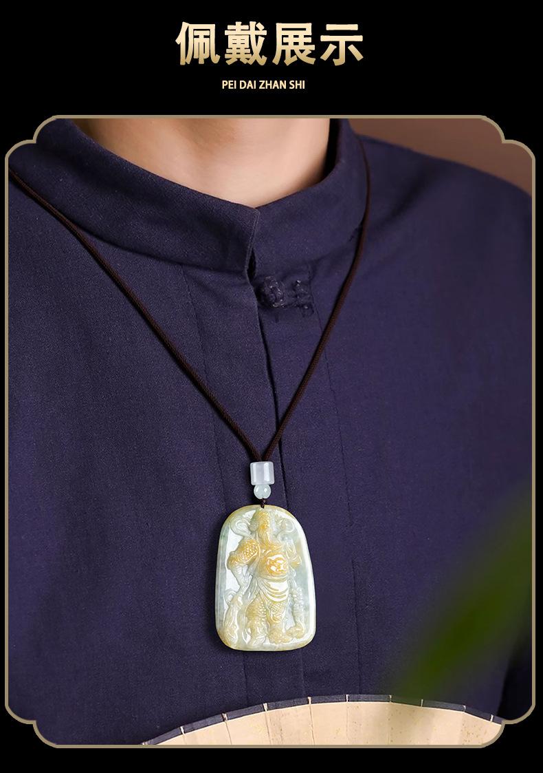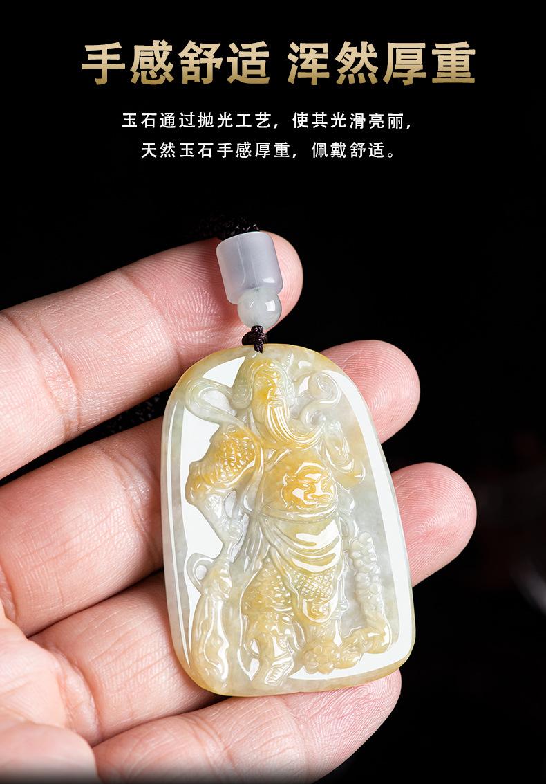 Jadeíta Natural Grado A Artes Marciales Guan Gong Colgante de Jade Artesanía Amarillo Quemado Colgante de Jade Glutinoso Collar para Hombre