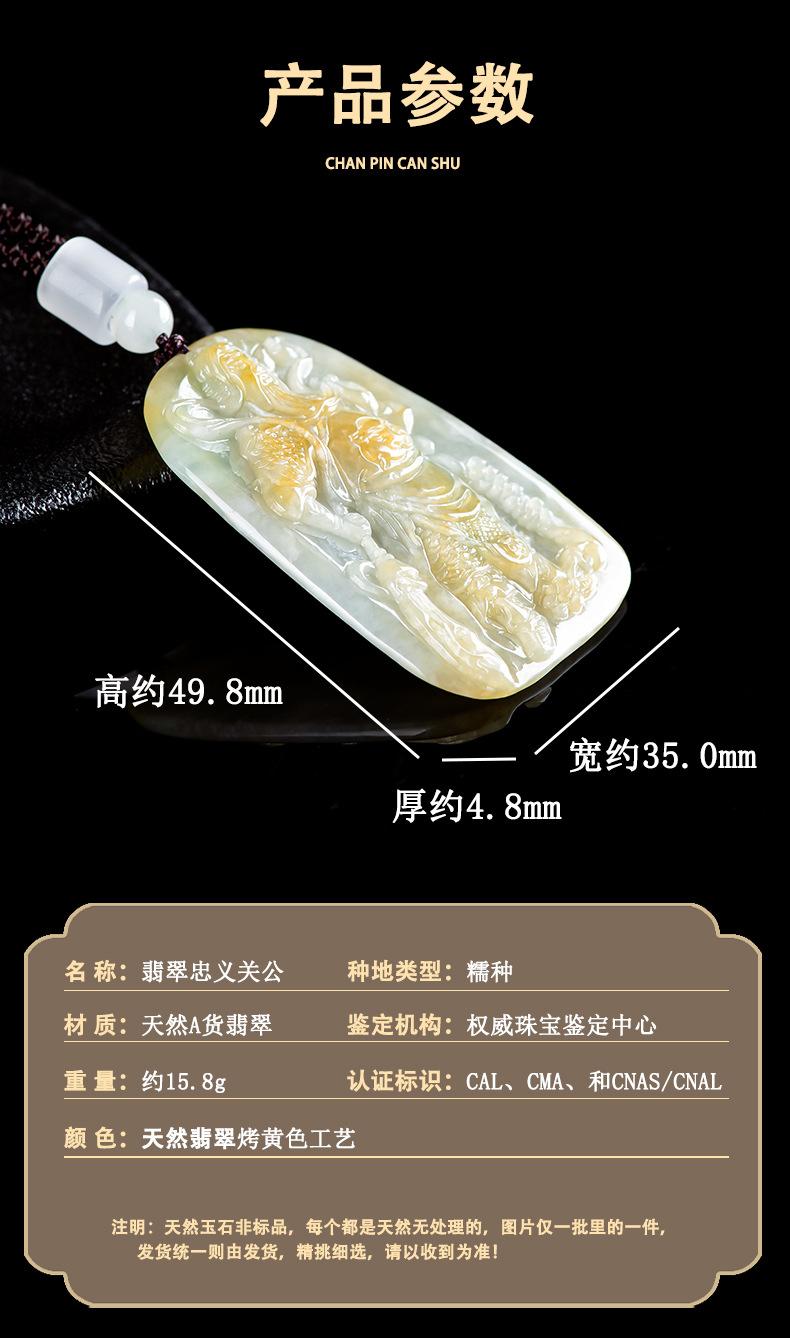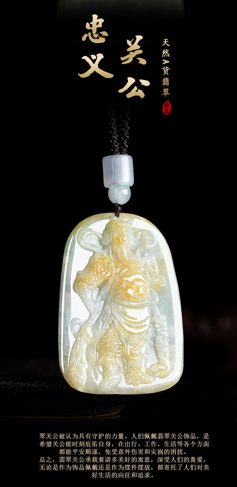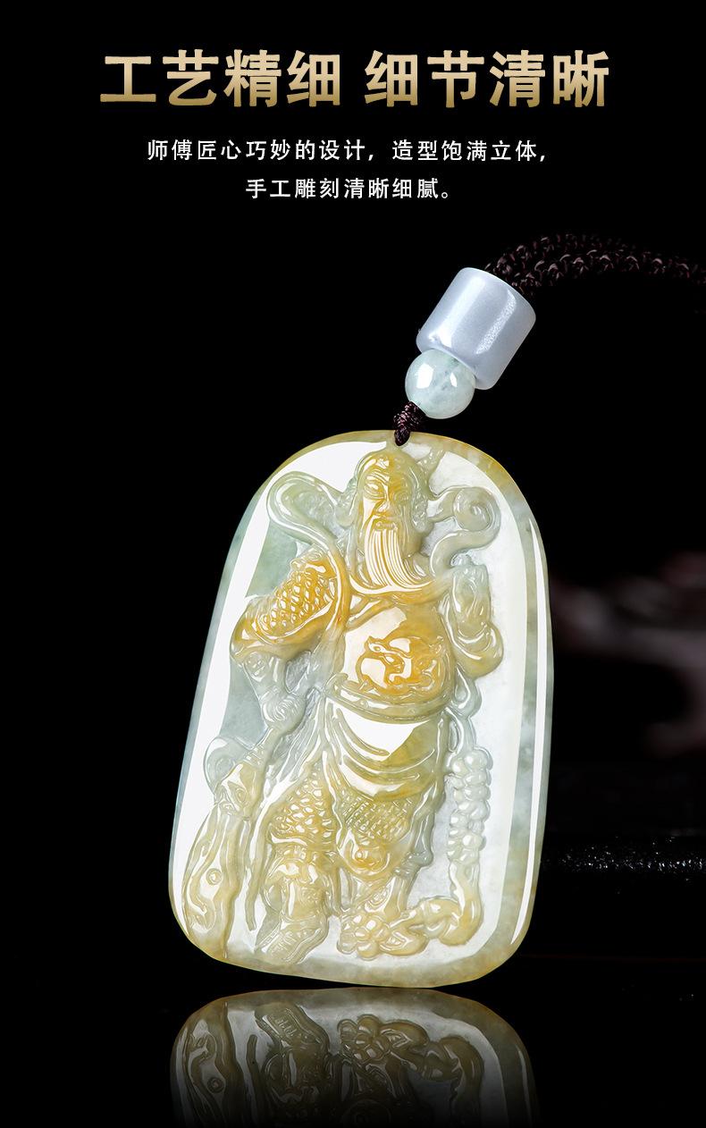 Jadeíta Natural Grado A Artes Marciales Guan Gong Colgante de Jade Artesanía Amarillo Quemado Colgante de Jade Glutinoso Collar para Hombre