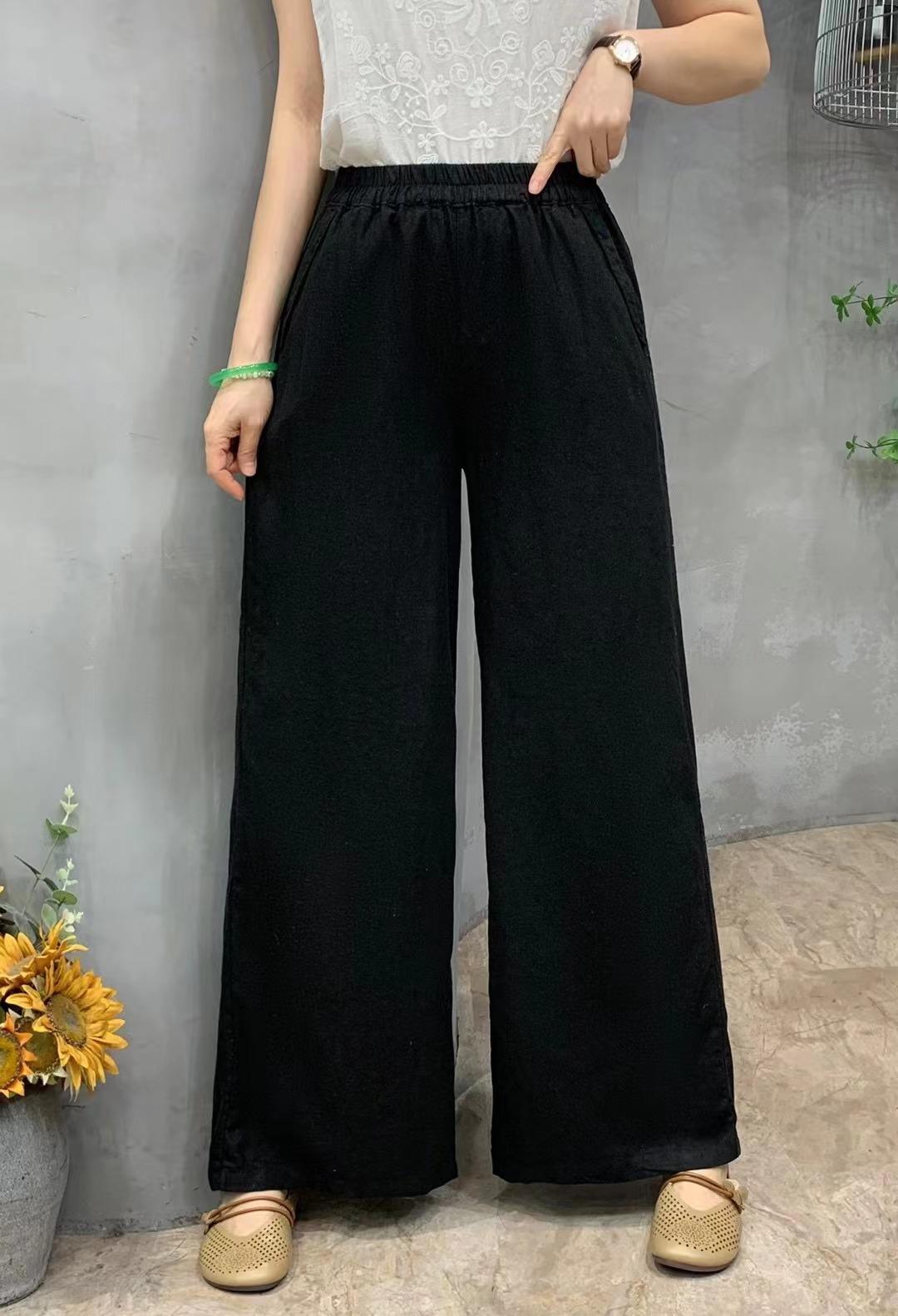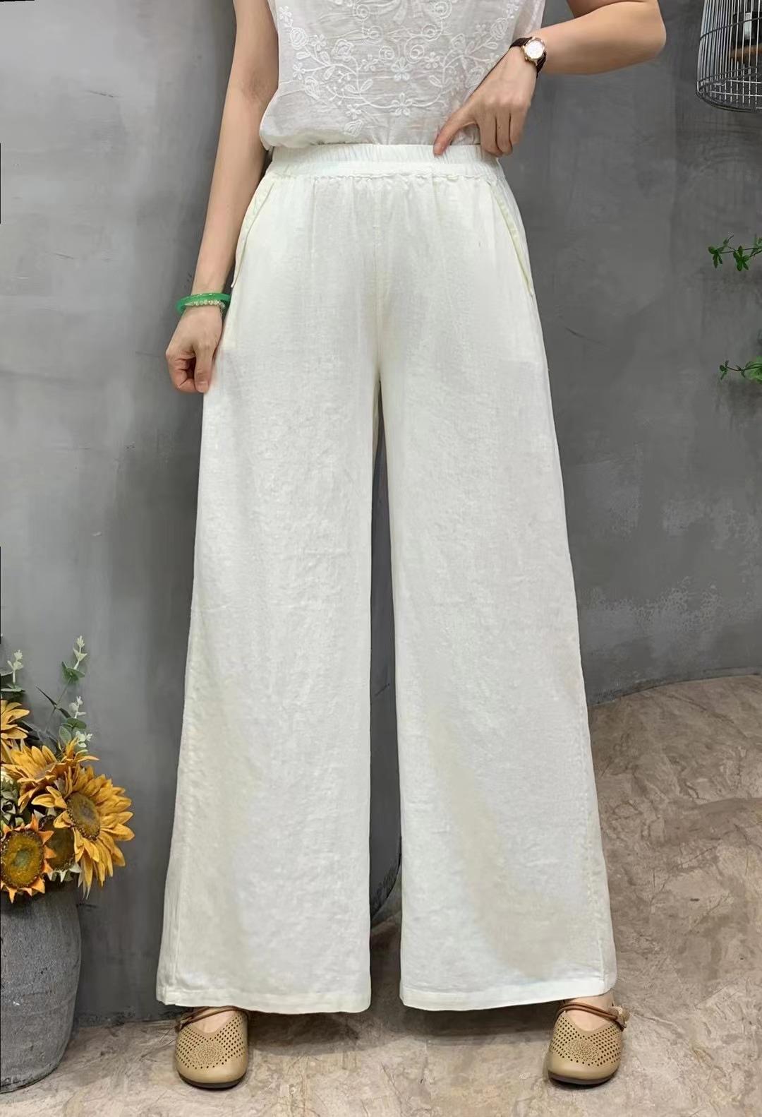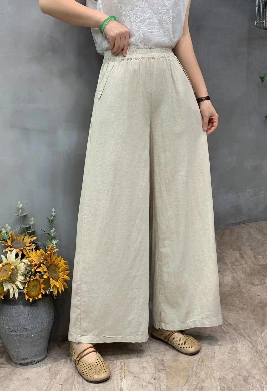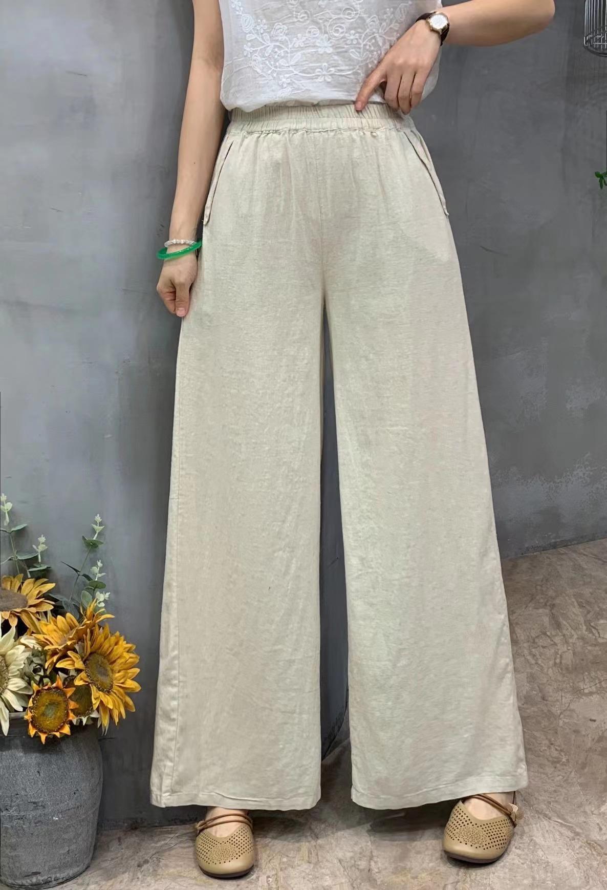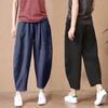 Pantalones de verano de estilo literario, de algodón y lino, de color liso, holgados, con cintura ancha, para mujer, de talla grande, adelgazantes, informales, combinables.