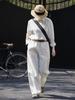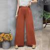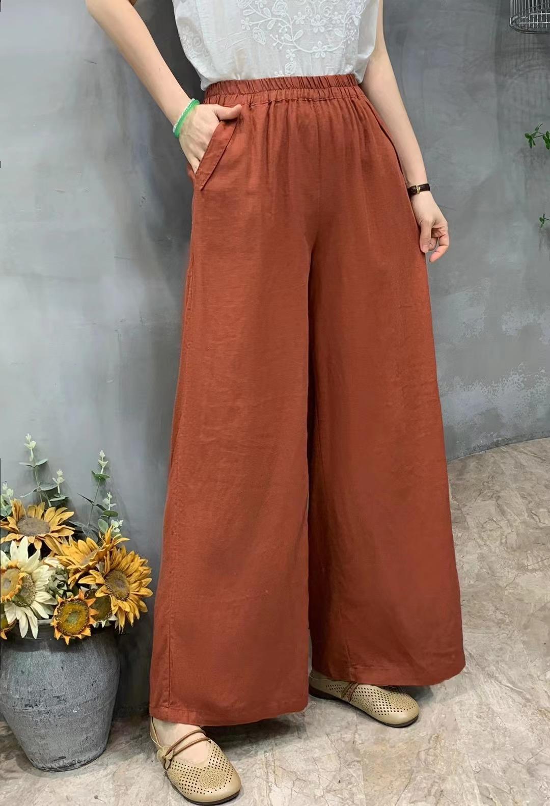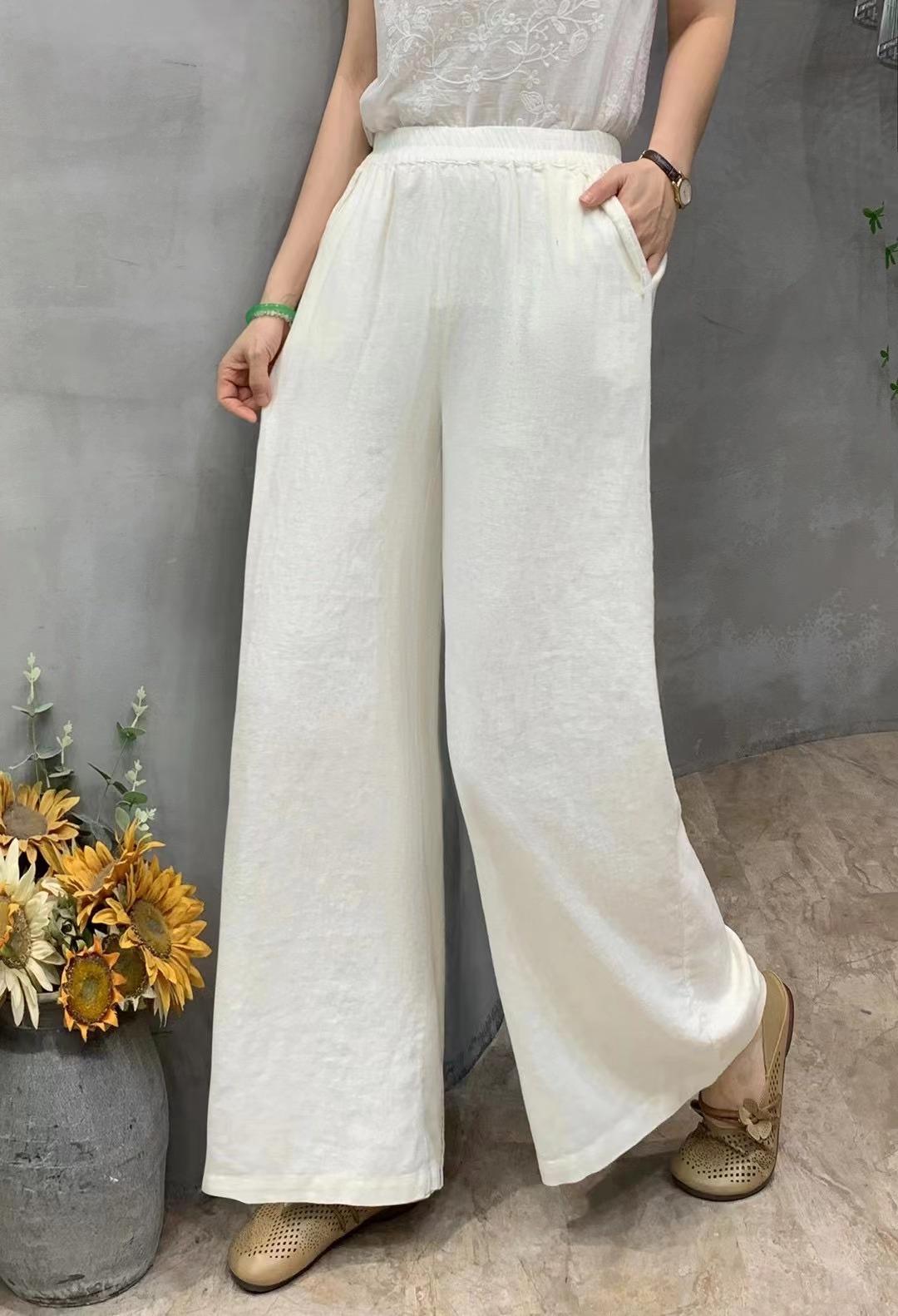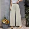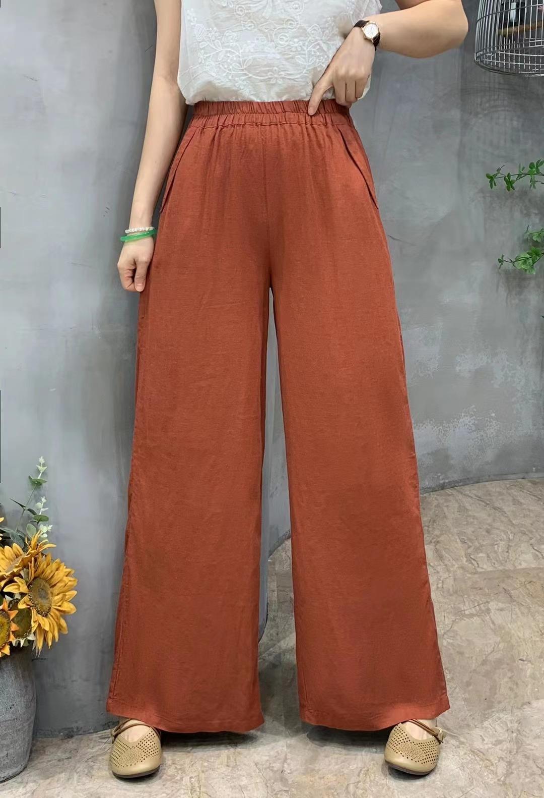 Pantalones de verano de estilo literario, de algodón y lino, de color liso, holgados, con cintura ancha, para mujer, de talla grande, adelgazantes, informales, combinables.