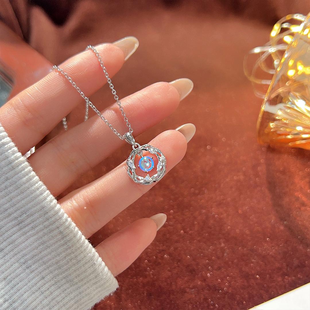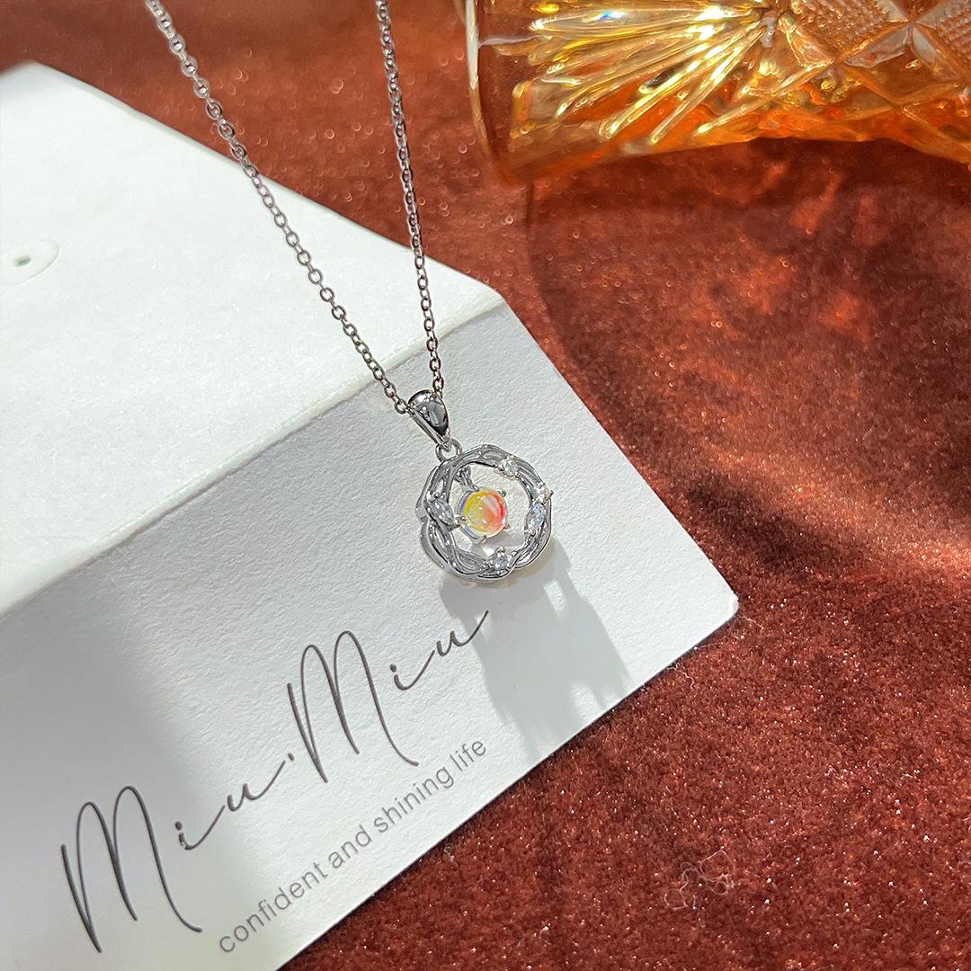 Collar de piedra lunar de plata esterlina S925 para mujer, pequeño, fresco, dulce, diseño de nicho, pluma que acompaña la cadena de clavícula.