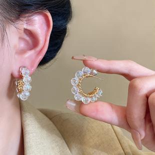 Aretes de nicho de lujo ligero en forma de C de cristal de imitación para mujer diseño de alta gama temperamento irregular aretes con cuentas aretes de celebridad de internet