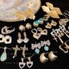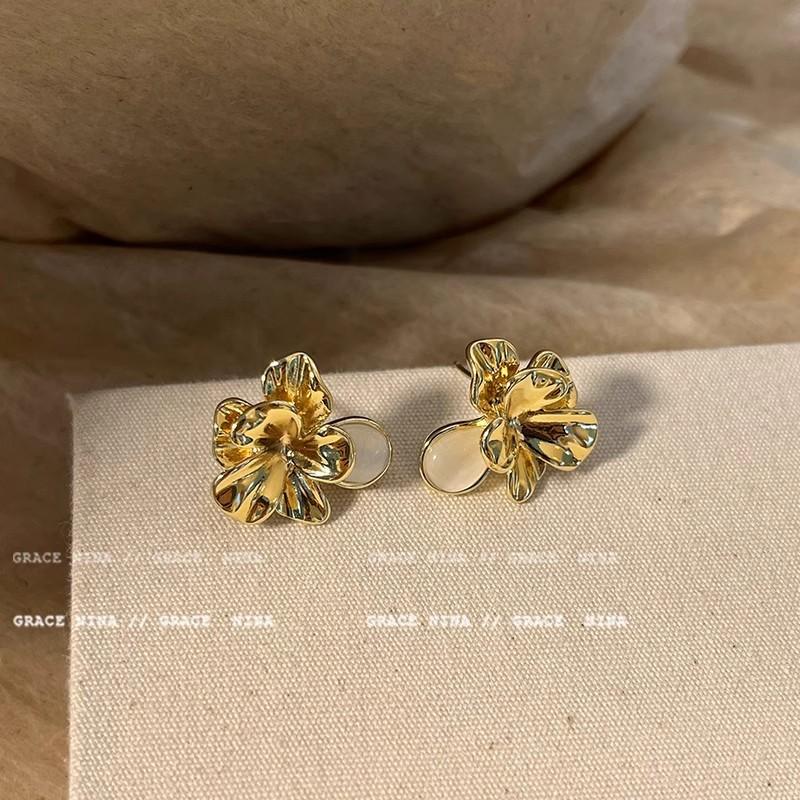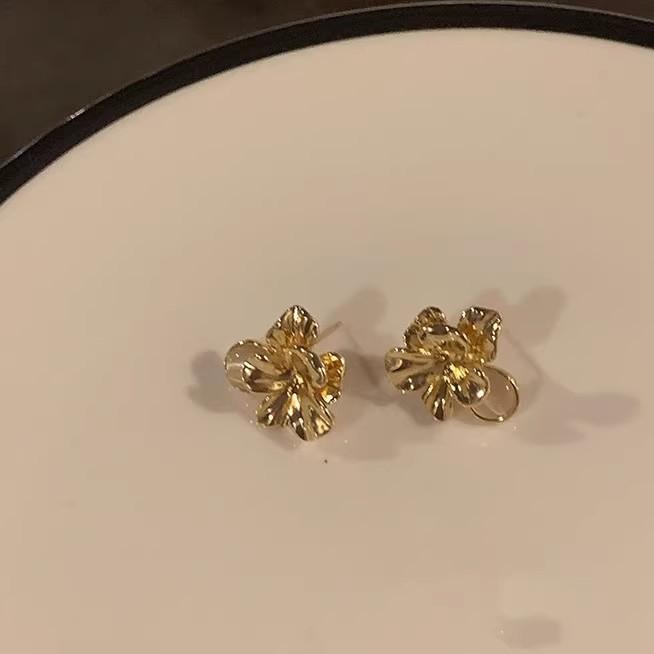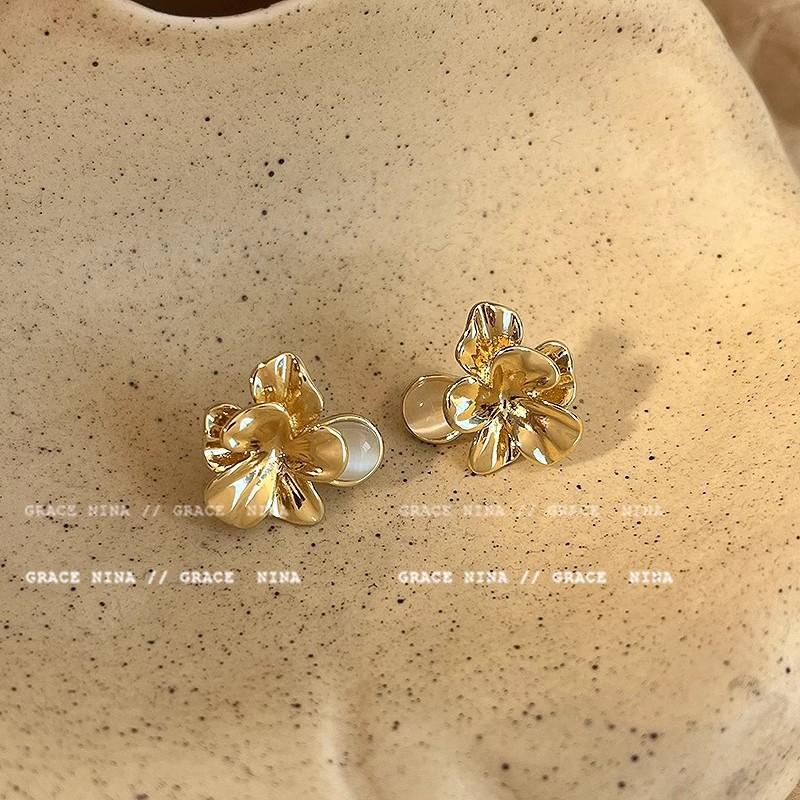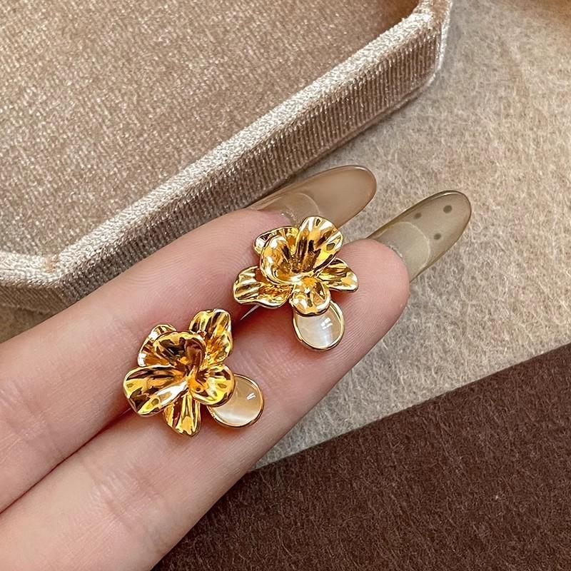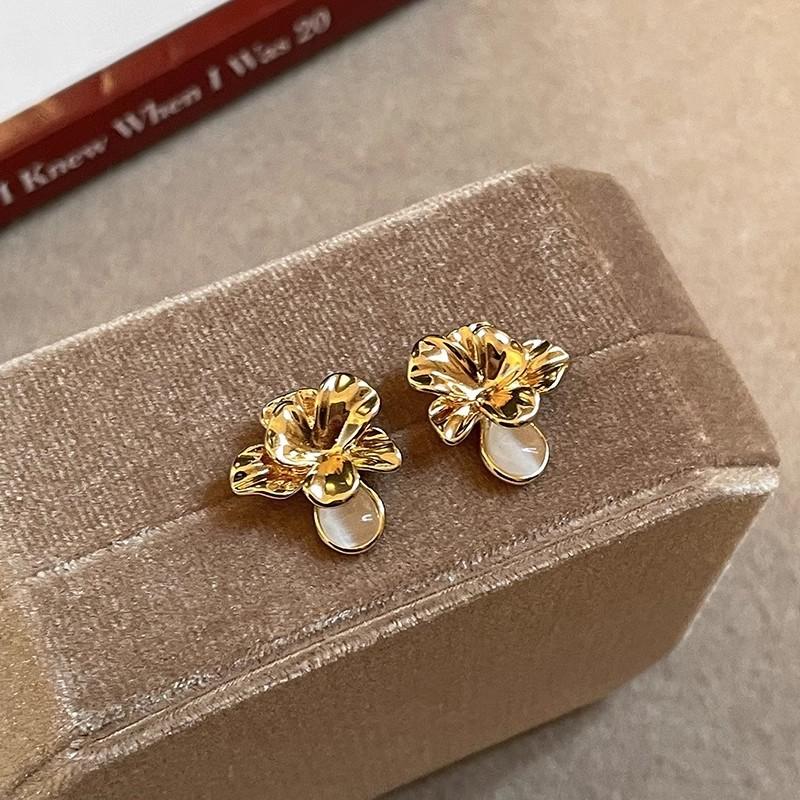 Aretes franceses retro ojo de gato flor de metal para mujer aretes exquisitos de lujo ligero aretes de temperamento de diseño nicho