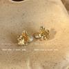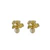 Aretes franceses retro de flor de perlas, diseño nicho de lujo ligero, aretes de celebridad de alta gama, aretes de moda versátiles