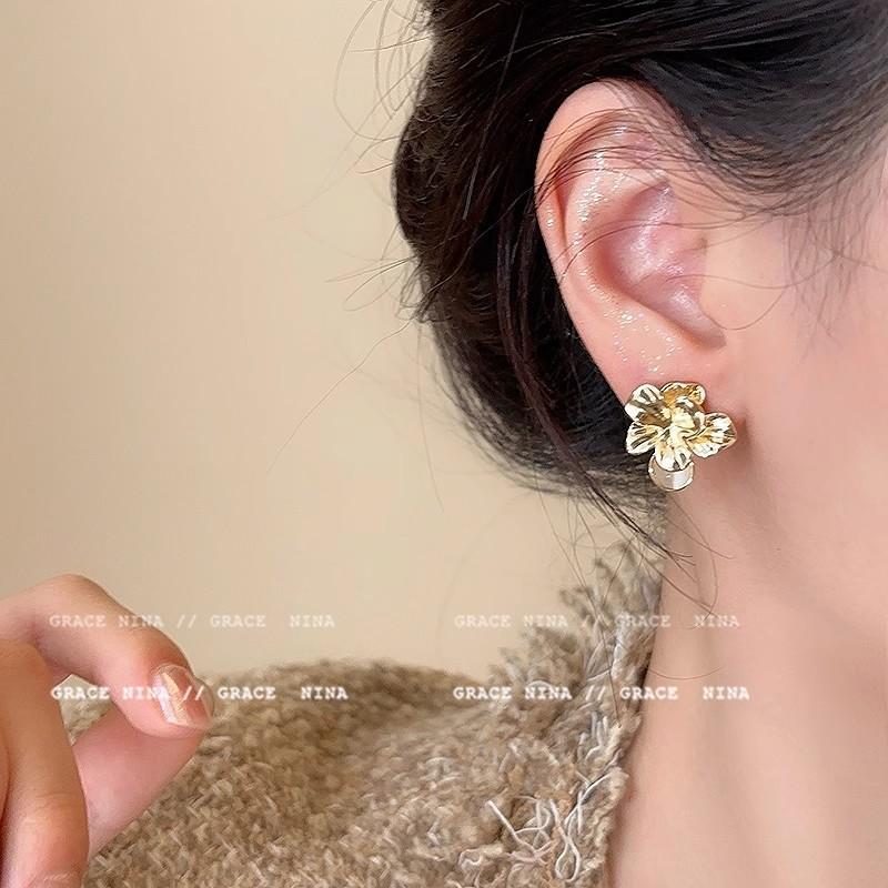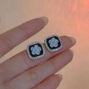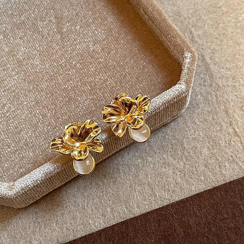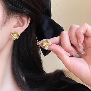 Pendientes de flor de metal con diseño de ojo de gato estilo retro francés para mujer, ligeros, lujosos y exquisitos, con diseño de nicho elegante.
