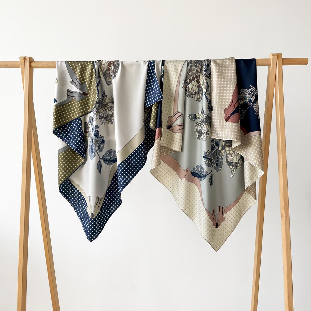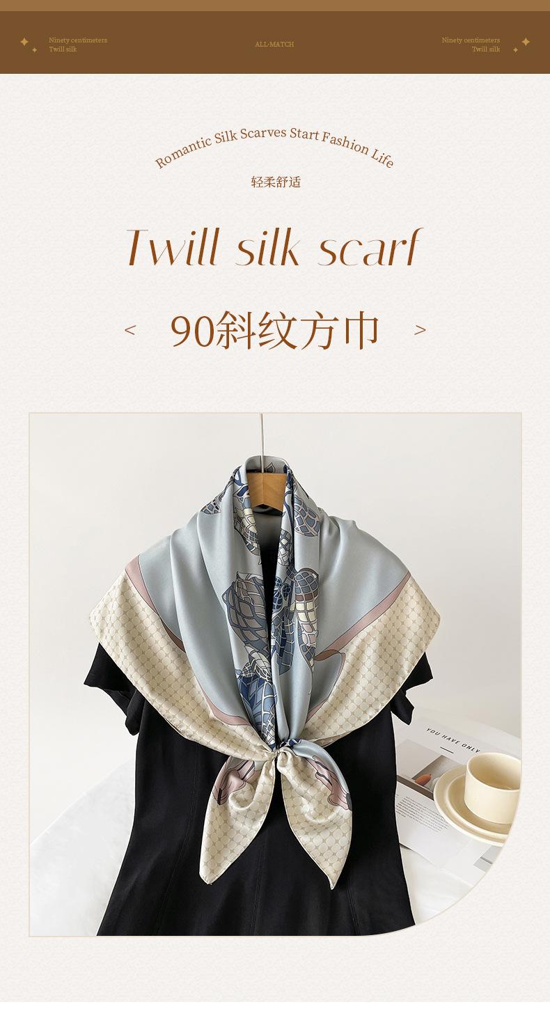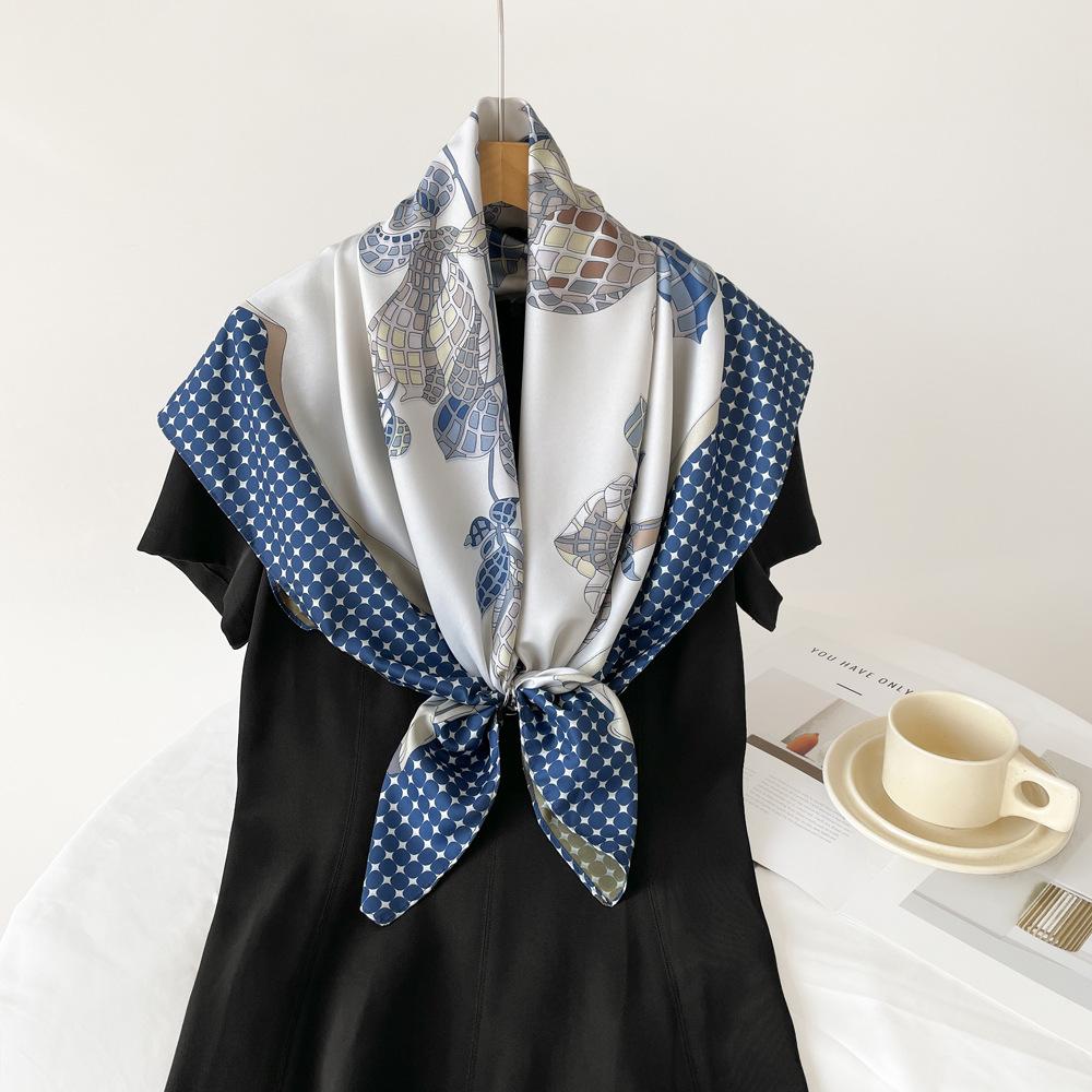 Bufanda de seda de sarga de 90 cm para mujer, nueva bufanda con estampado de dos colores y doble cara, pequeña bufanda cuadrada de gran sentido, chal, bufanda al por mayor