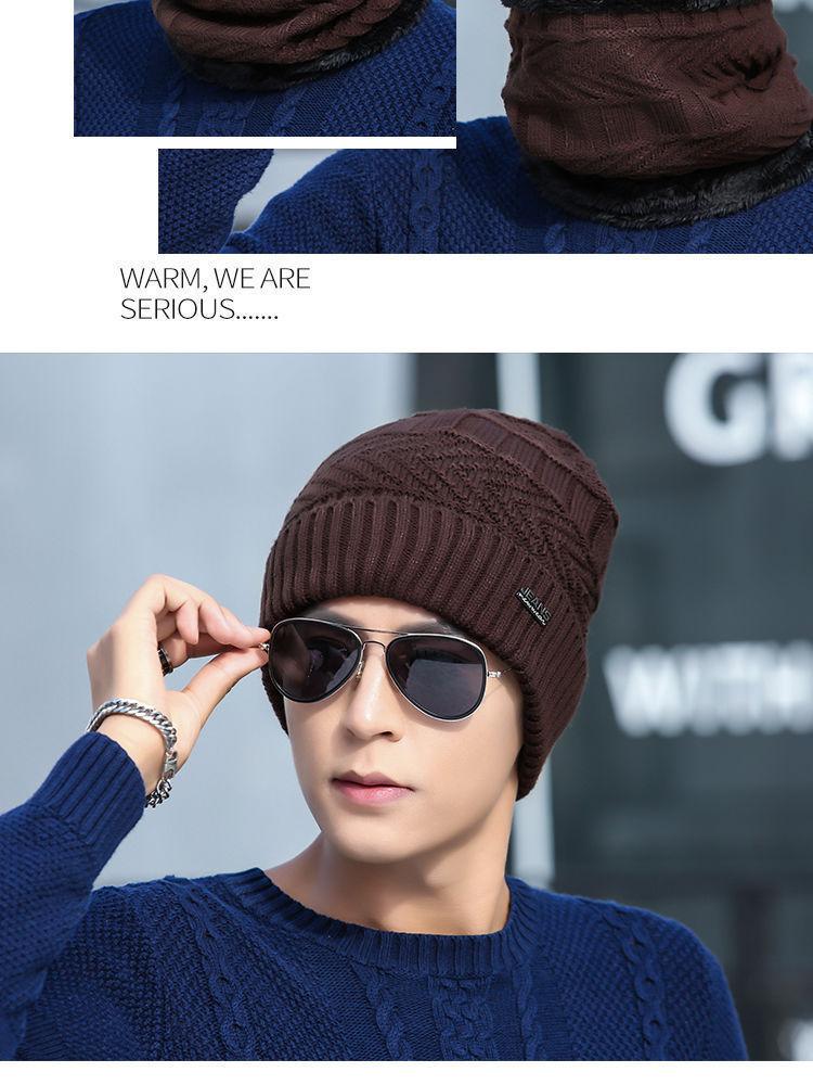 Gorro de Lana para Hombre Invierno Juventud Cálido Engrosado Tejido de Lana Estilo Coreano Moderno Forrado de Vellón Invierno Algodón Gorro a Prueba de Frío Pulóver