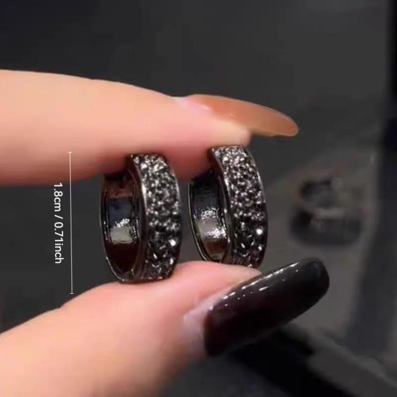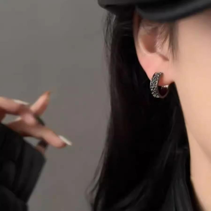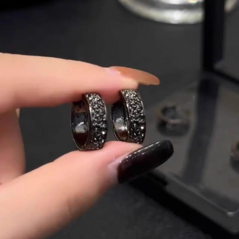 Anillo Retro Negro de Lujo Ligero con Taladro Completo Hebilla para la Oreja Moda Diseño Nicho Sentido Pendientes Viento Frío Otoño e Invierno Pendientes Combinables