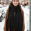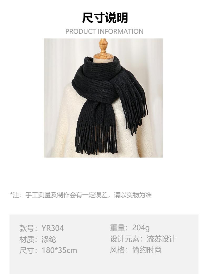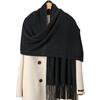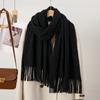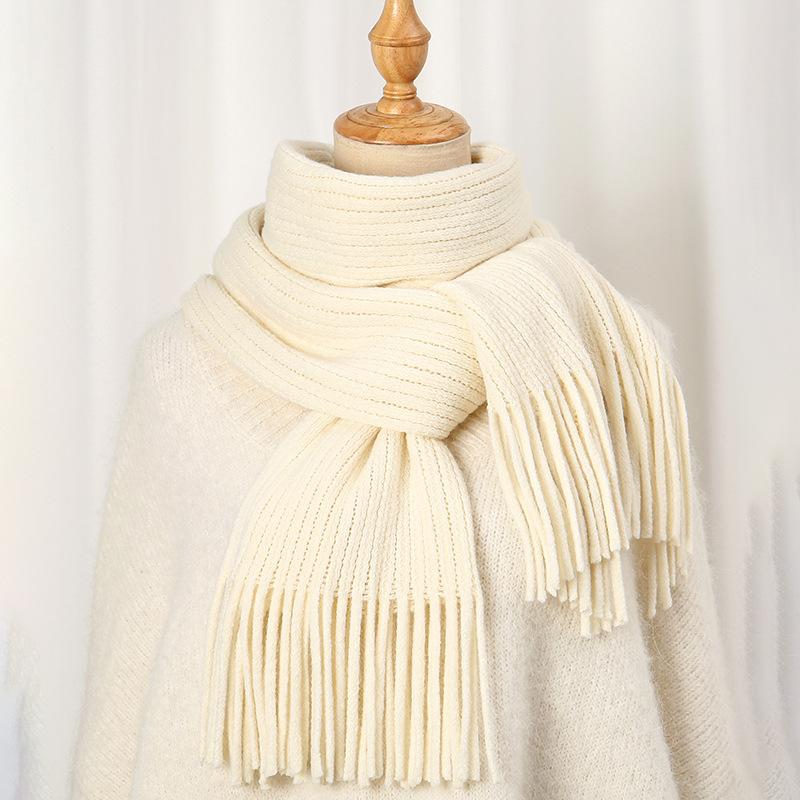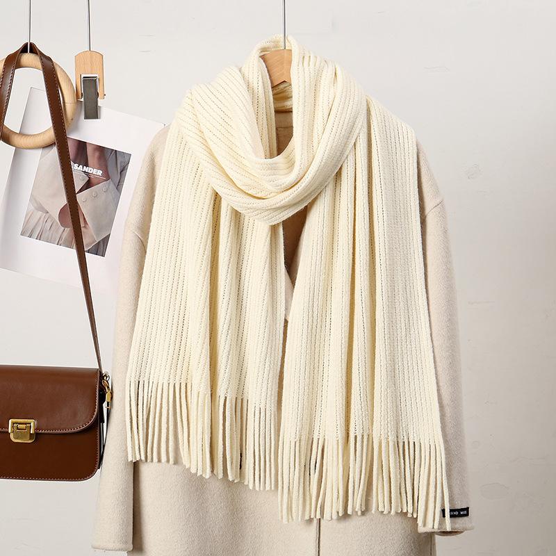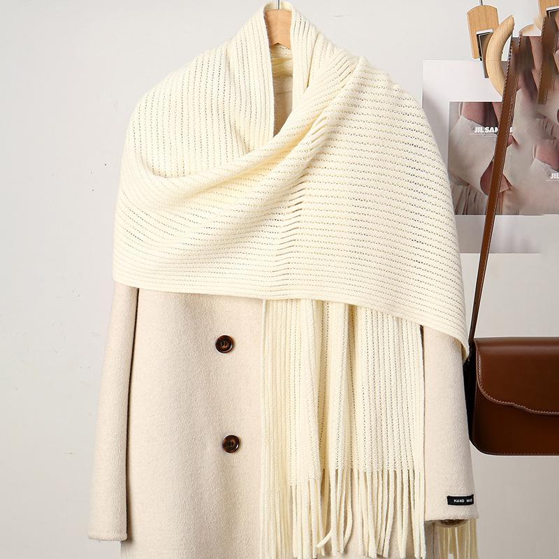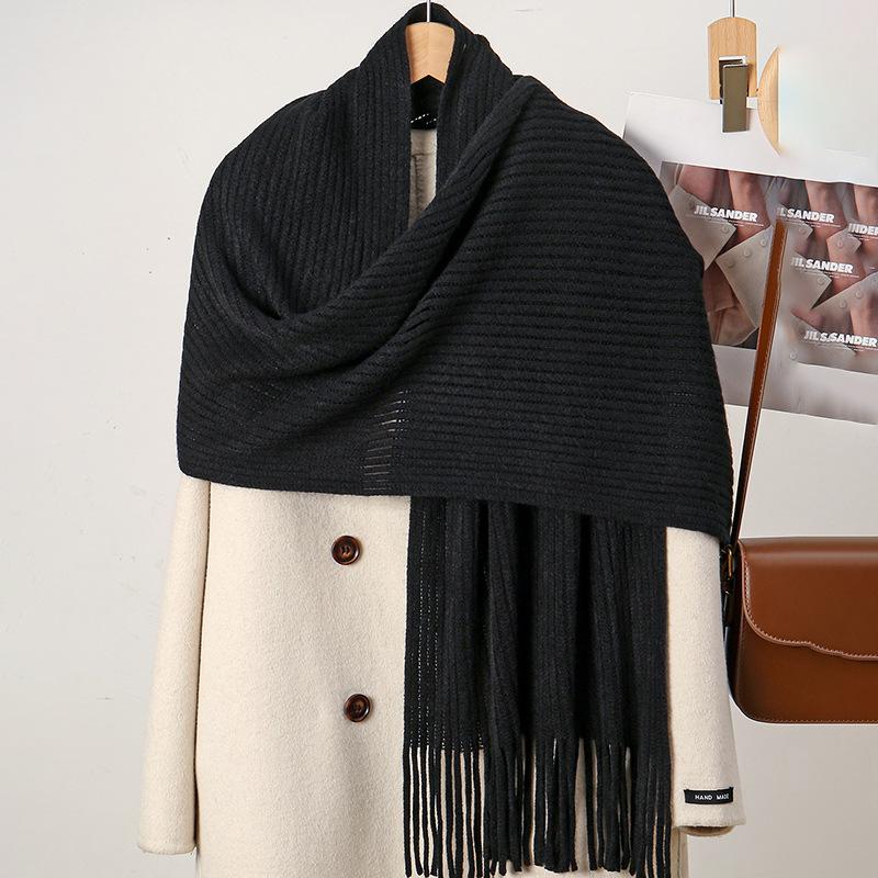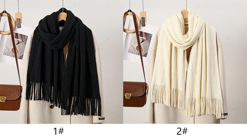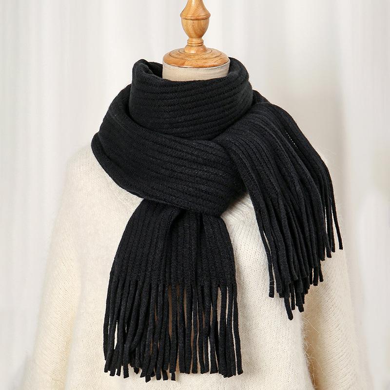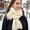 Bufanda de invierno para mujer, de punto grueso a rayas, de alta gama, de lana combinable, con borlas de poliéster de color sólido y grueso para hombre.