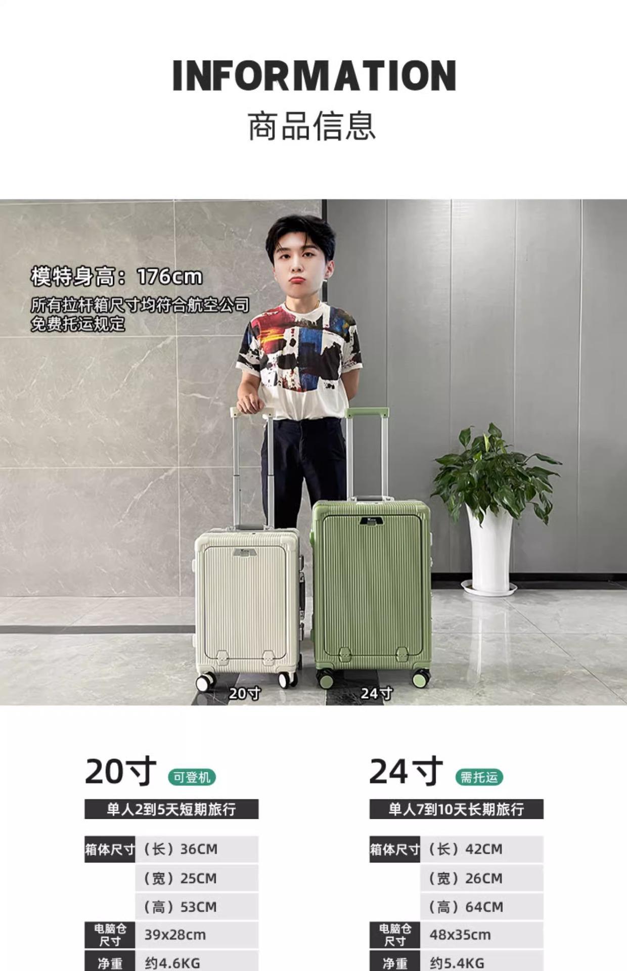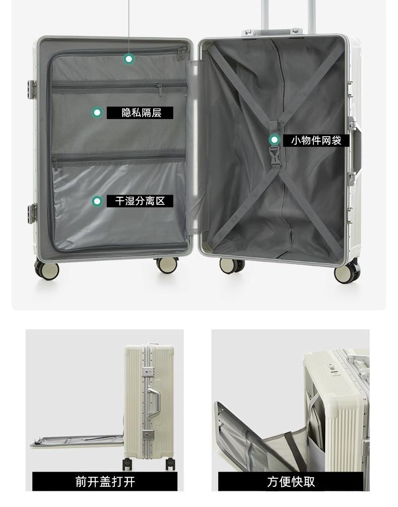 Maleta Multifuncional de Aspecto Elegante, Rueda Silenciosa, Marco de Aluminio, Maleta Trolley de Apertura Frontal, Viaje 20 pulgadas Caja de Código para Abordar