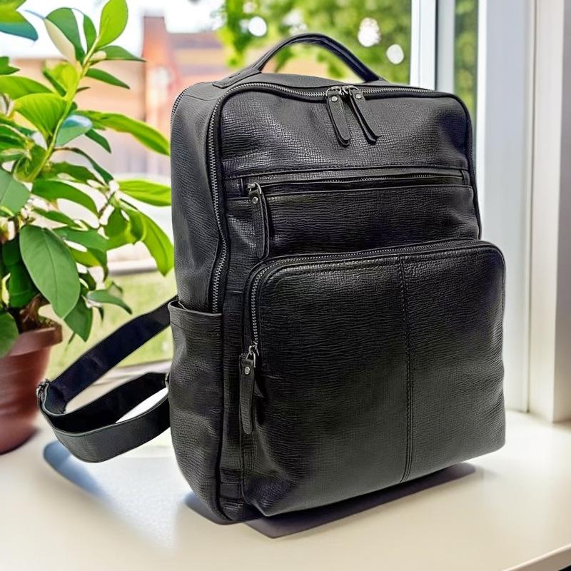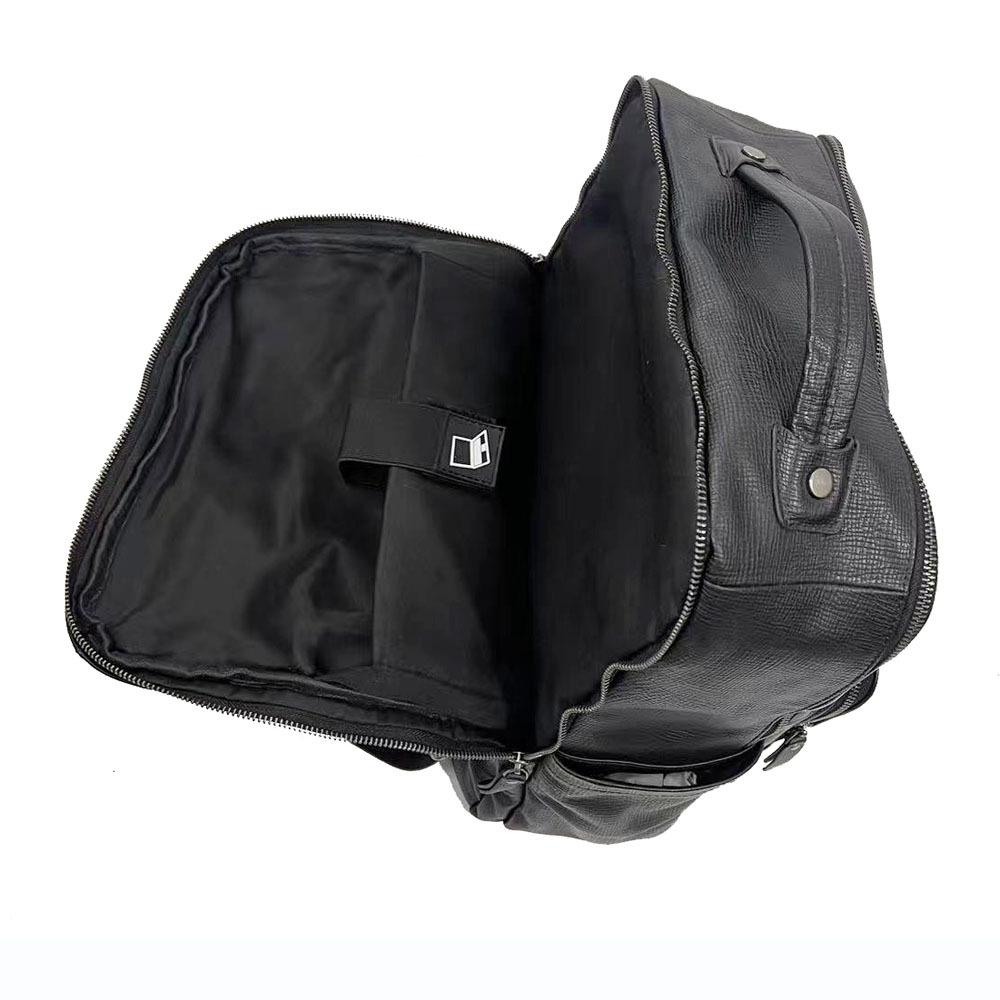 Estructura del producto: Doble cremallera en la bolsa, un bolsillo para tableta en el bolsillo trasero con cremallera, un bolsillo oculto con cremallera en el bolsillo principal y dos bolsillos abiertos