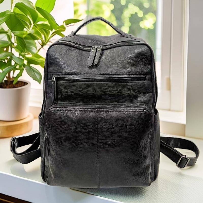 Estructura del producto: cremallera de doble capa en la bolsa, bolsillo para computadora en la parte trasera, un bolsillo oculto con cremallera en la bolsa principal y dos bolsillos abiertos.