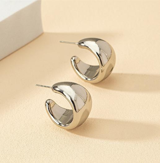 Pendientes de aro en forma de C, sencillos, de estilo europeo y americano, de alta gama, de metal con un toque de cara ancha, joyería transfronteriza.