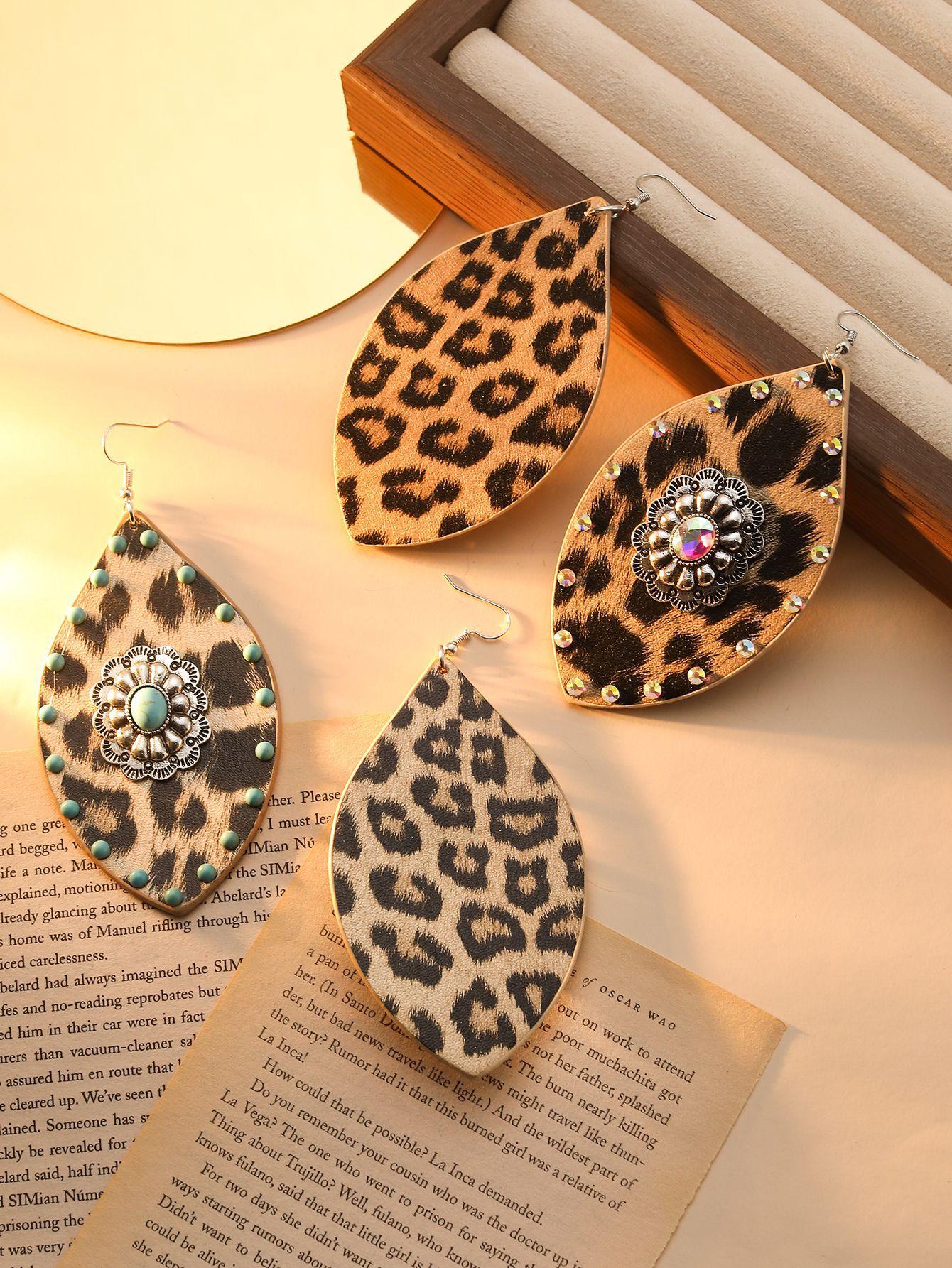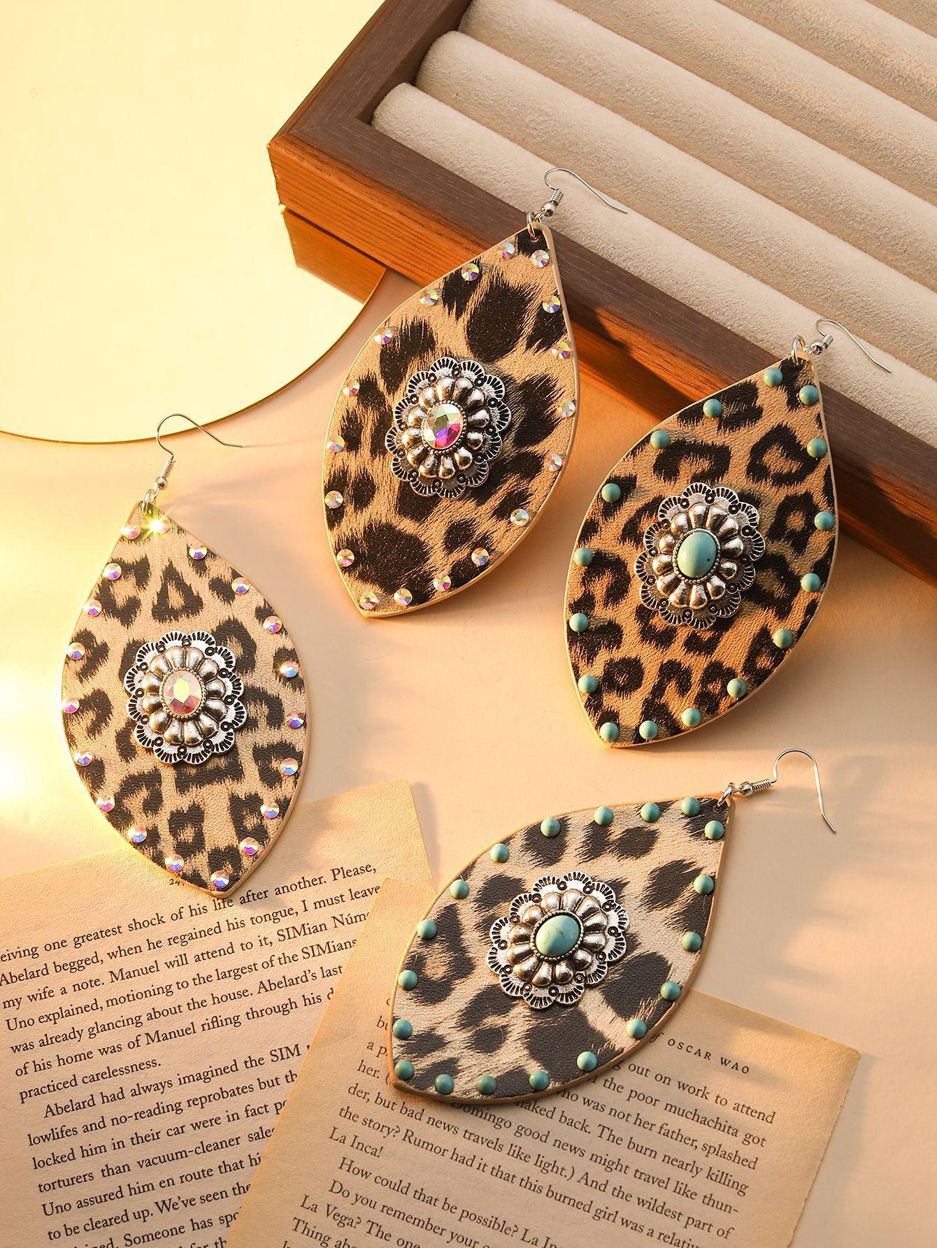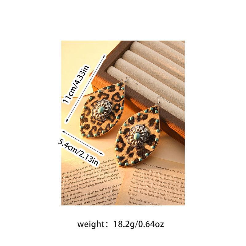 Aretes transfronterizos de diamantes coloridos con estampado de leopardo turquesa, aretes retro bohemios exagerados, joyería para la oreja de estilo étnico, suministro al por mayor
