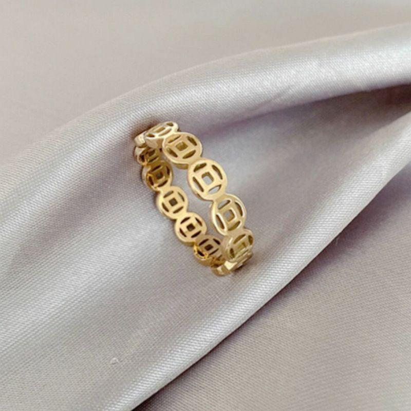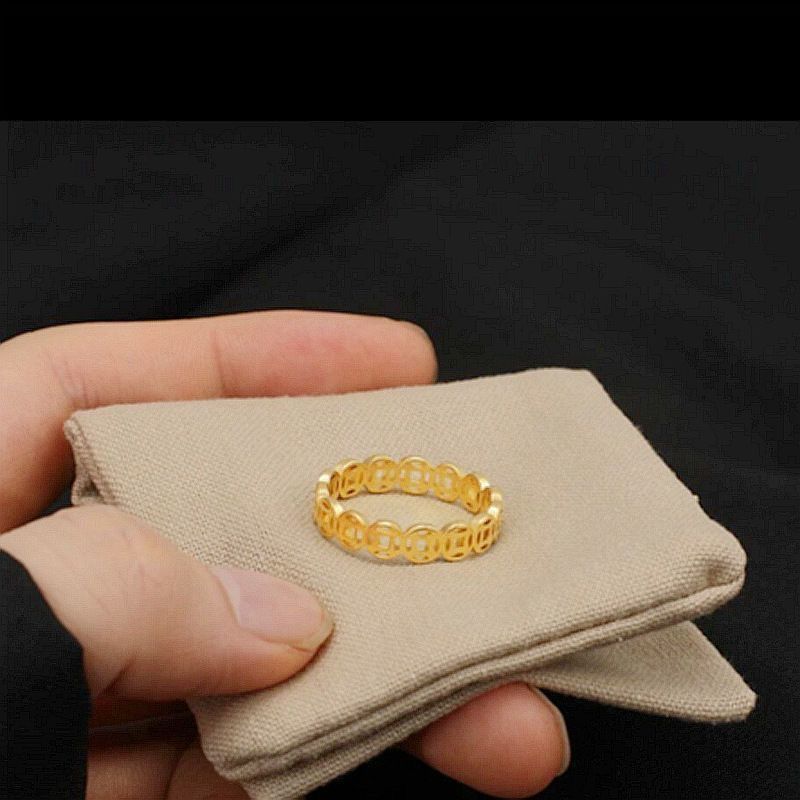 Anillo de transferencia de cobre con forma de fortuna hueca de oro sin decoloración, anillo de pareja retro geométrico con nicho, joyería