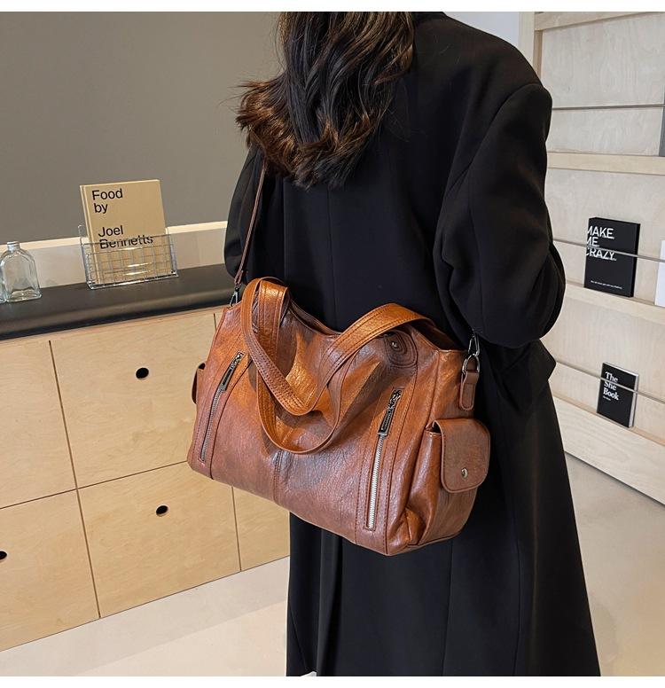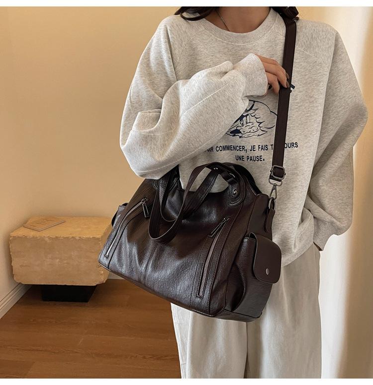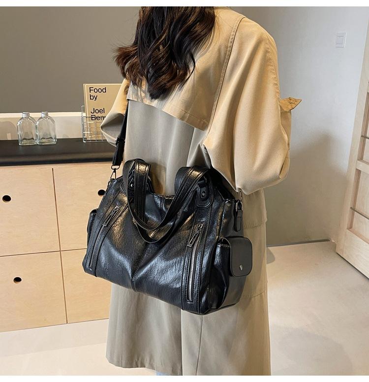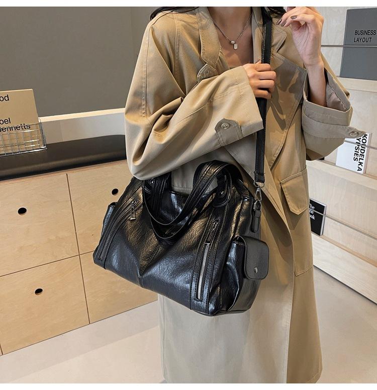 Bolso Tote Vintage de Gran Capacidad para Mujer 2025 Moda Primavera Temprana Texturizado Bolso de Viaje de Corta Distancia Bolso Bandolera para Viajero