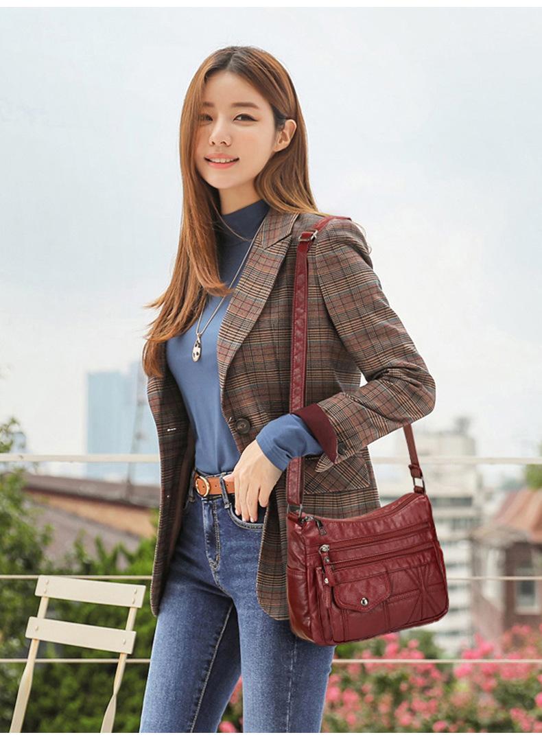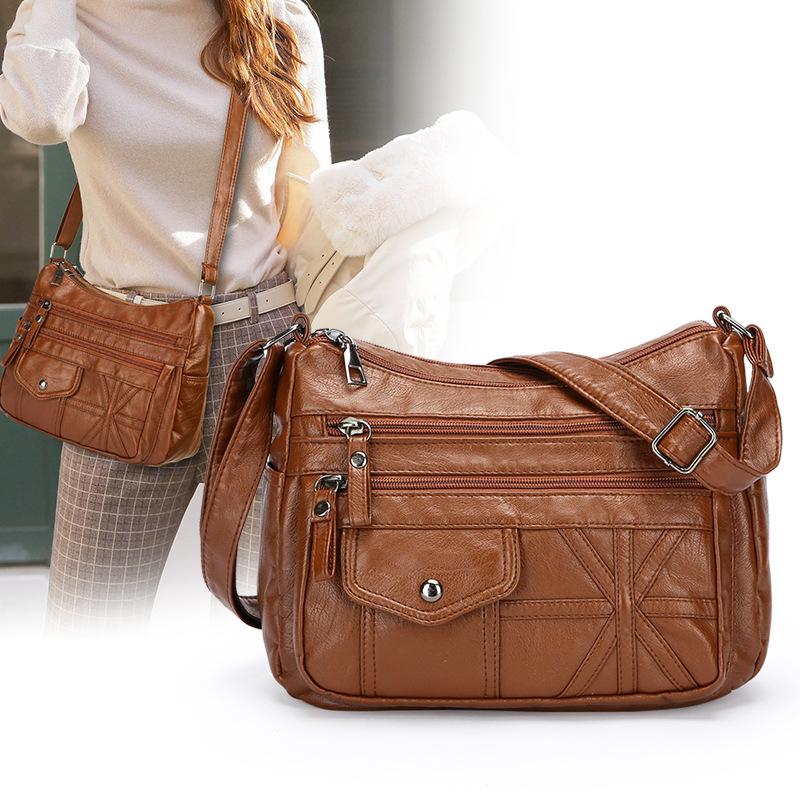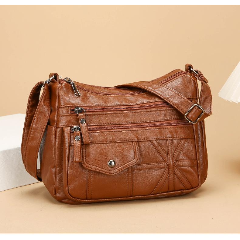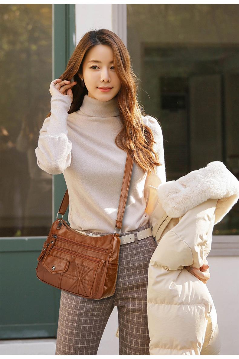 Bolso bandolera informal de piel suave multicapa y multibolsillos para mujer, estilo nuevo, a la moda, para comercio exterior.