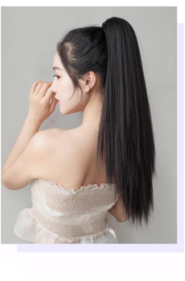Peluca cola de caballo femenina cabello largo liso nuevo estilo moda cola de caballo con clip trenza larga natural realista simulación cabello cola de caballo trenza