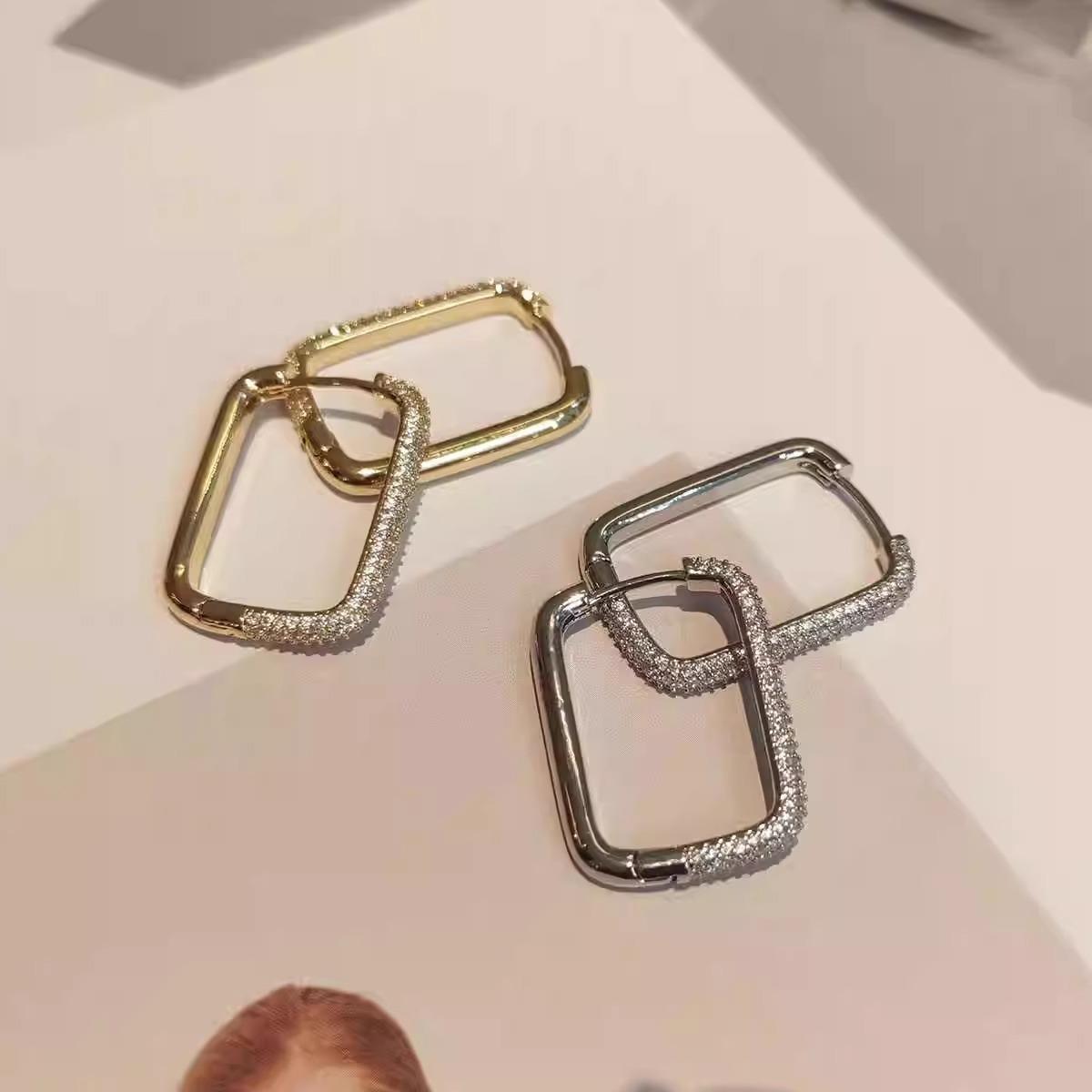 Aretes Cuadrados Aretes Geométricos para Mujer Aretes Rectangulares con Hebilla de Anillo Diseño Nicho de Alta Gama Combinable Nuevos Aretes
