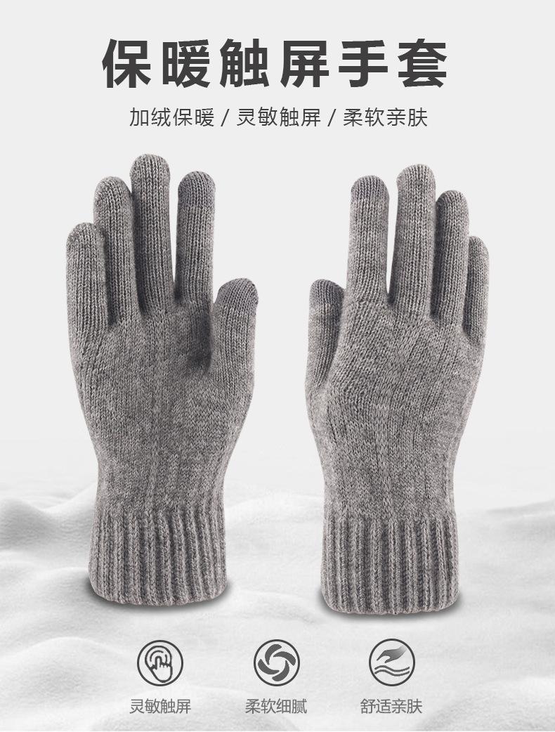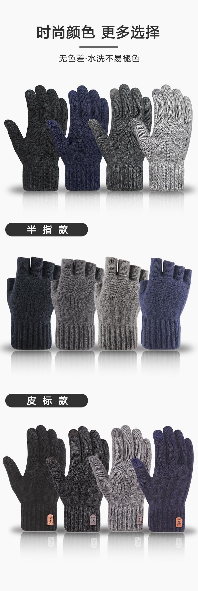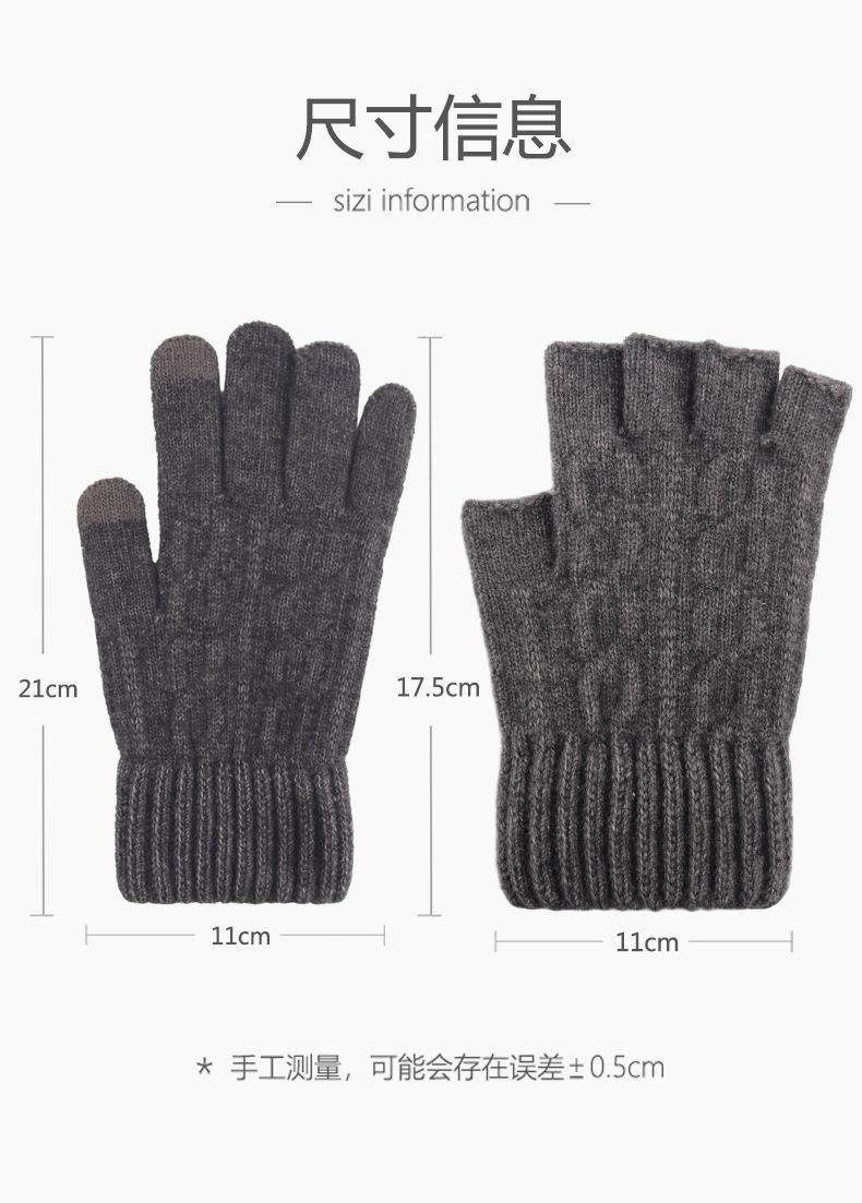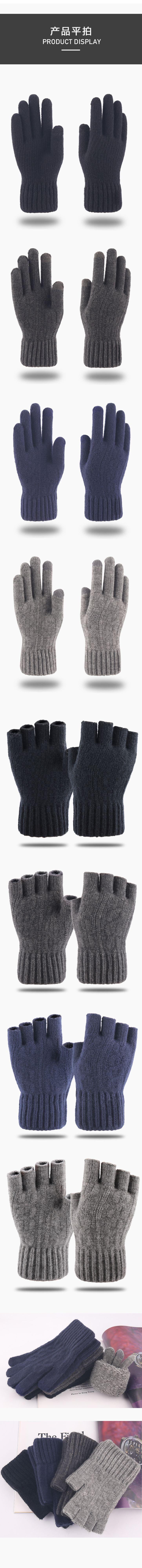 Guantes de Invierno Táctiles Transfronterizos para Hombre con Dedos Separados Cálidos Gruesos de Jacquard de Lana con Medio Dedo Tejidos al por Mayor