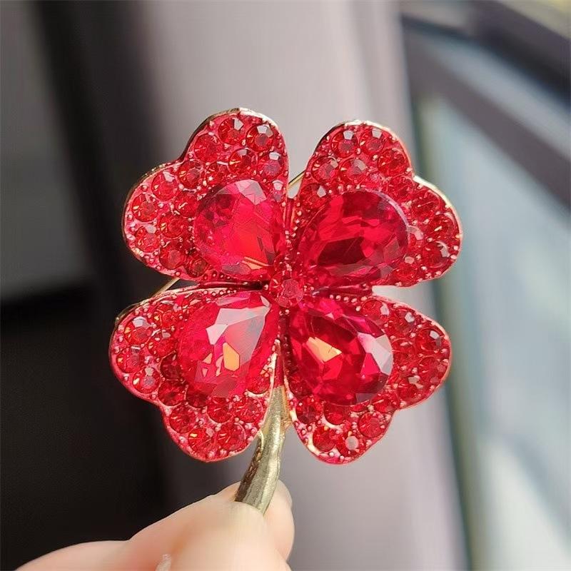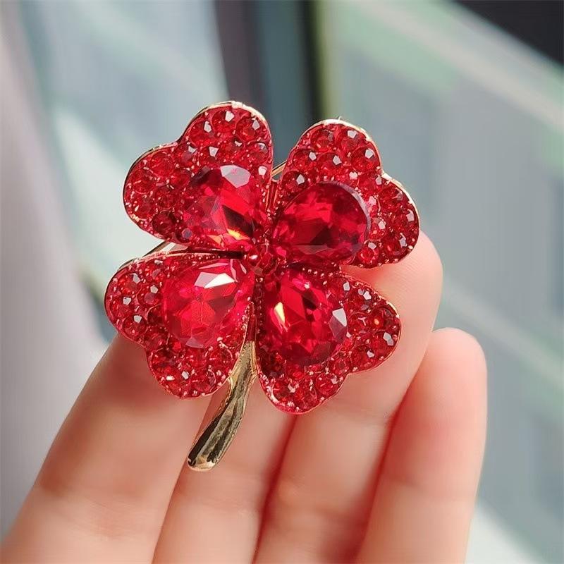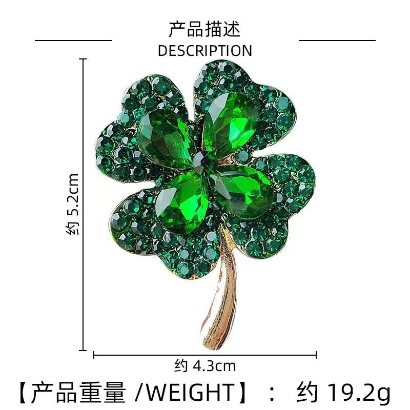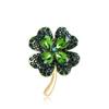 Compra Broche de cristal de alta gama de estilo coreano con forma de trébol de cuatro hojas, accesorio para ropa, color verde al por mayor en Joom.pro