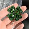 Broche de cristal de alta gama de estilo coreano con forma de trébol de cuatro hojas, accesorio para ropa, color verde