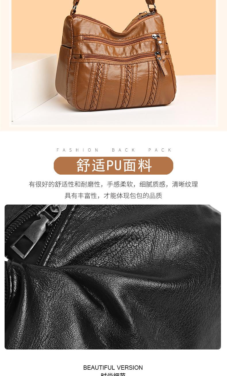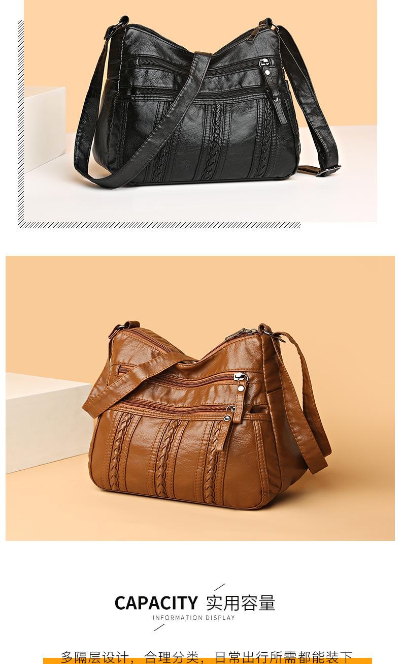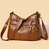 Bolso de piel suave texturizada lavada, bolso para mujer de mediana edad y mayor, nuevo bolso de madre multicapa 2024, bandolera pequeña cuadrada