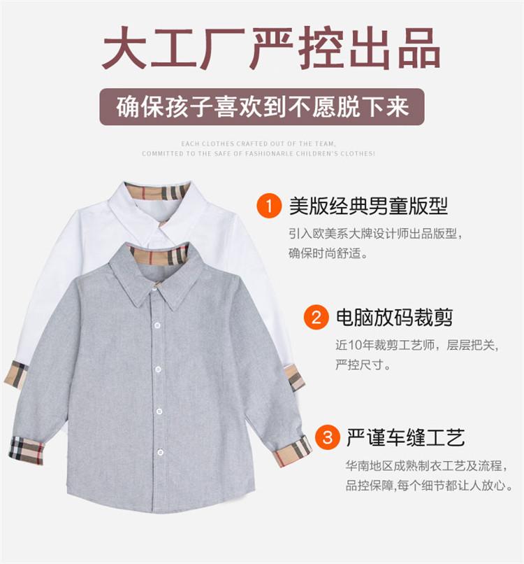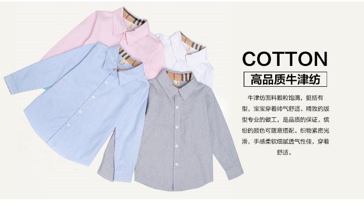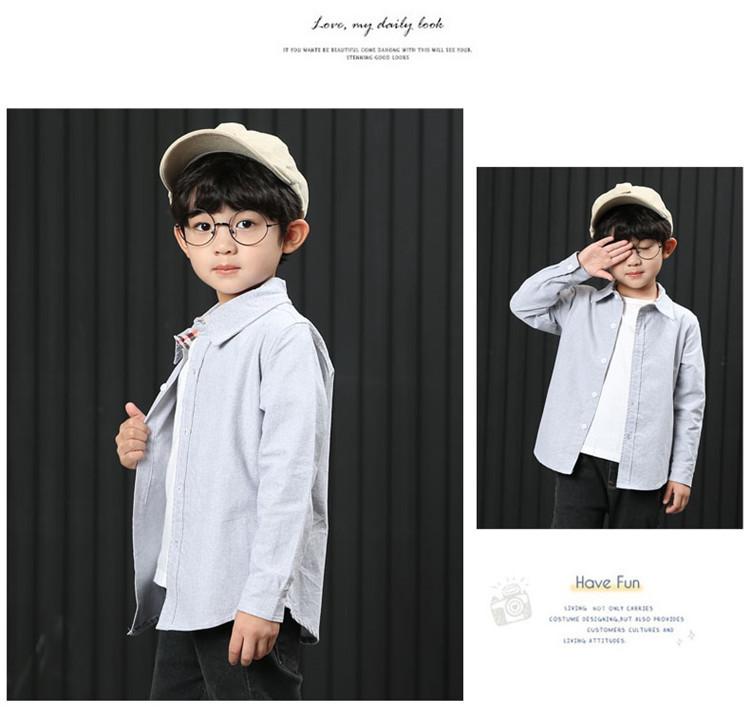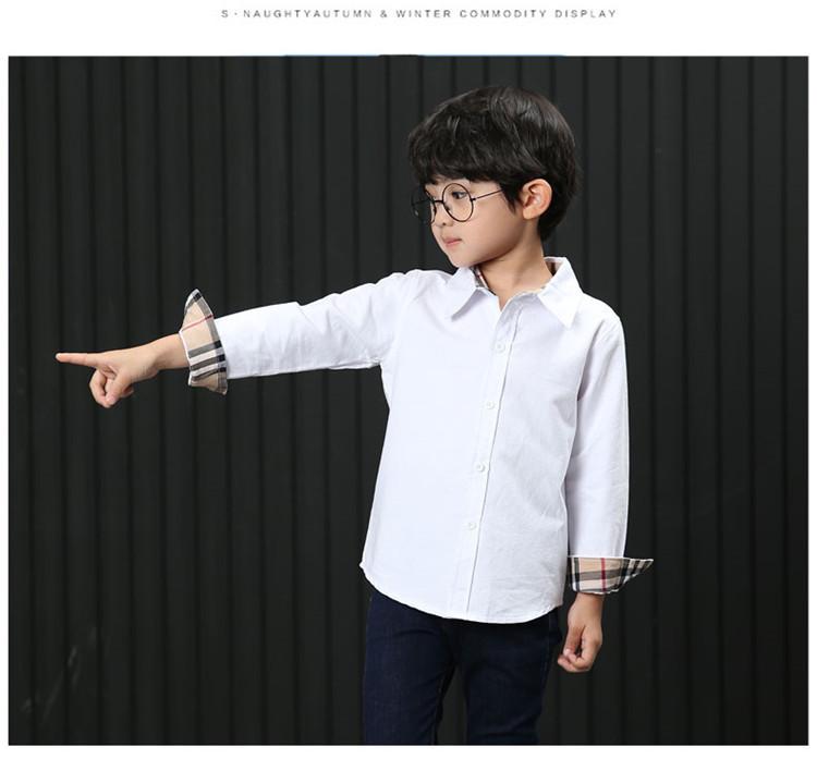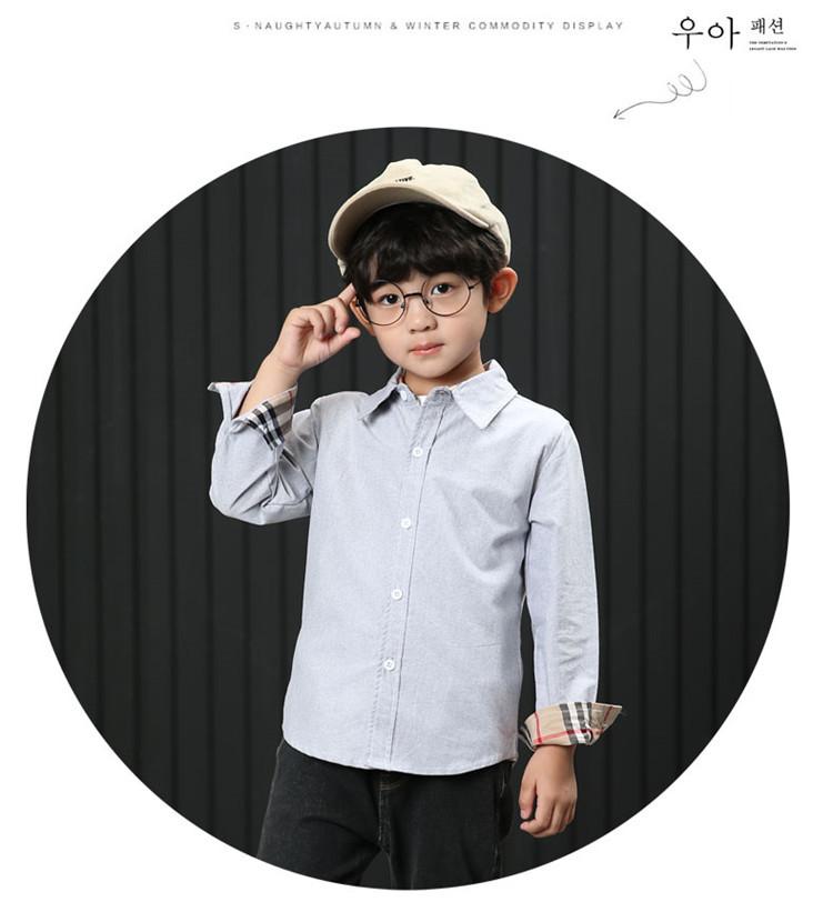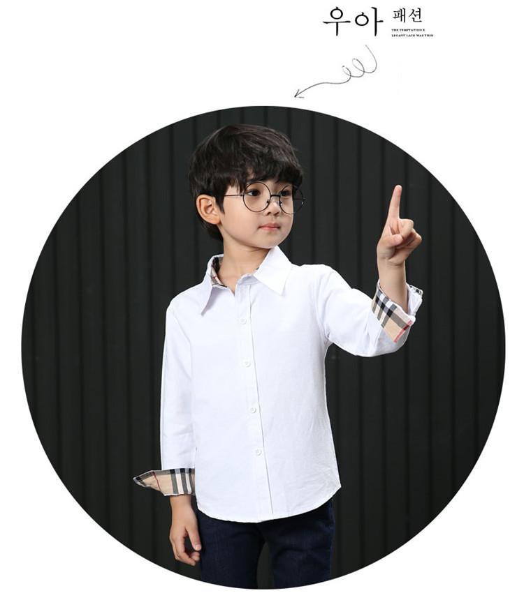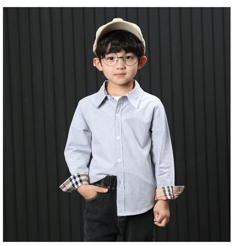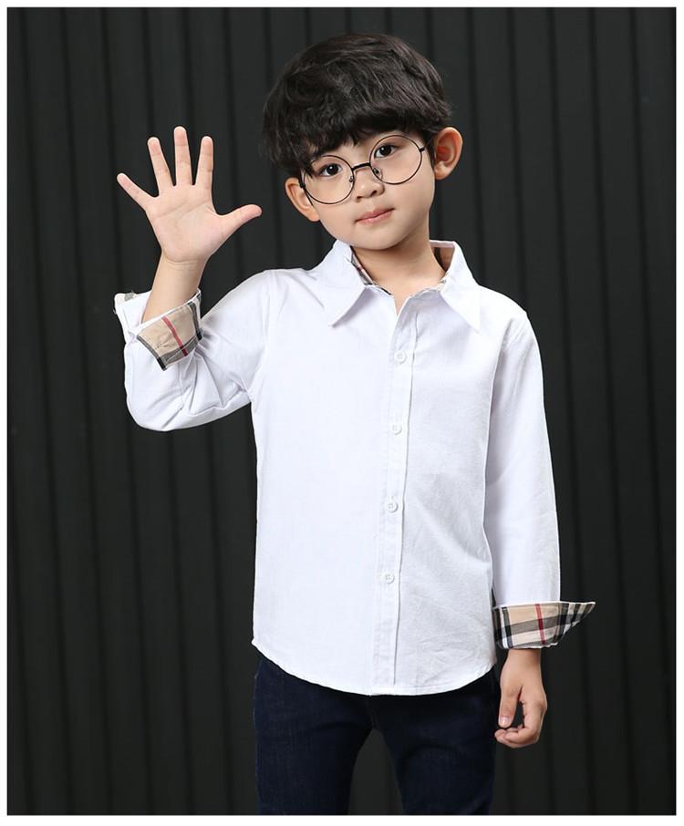 Camisa de niño primavera y otoño algodón Oxford hilado camisa de bebé camisa de cuadros de manga larga estilo coreano camisa blanca para niños de moda