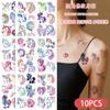 Nuevo 10 tatuajes de unicornio de dibujos animados, pegatinas para fiestas, decoración para el brazo, cara, impermeables, con brillantina.