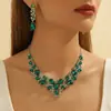 Collar de aleación transfronterizo con forma de gota de agua incrustado de diamantes, conjunto de lujo de dos piezas para novia, collar nuevo con pedrería, adecuado para bodas y fiestas