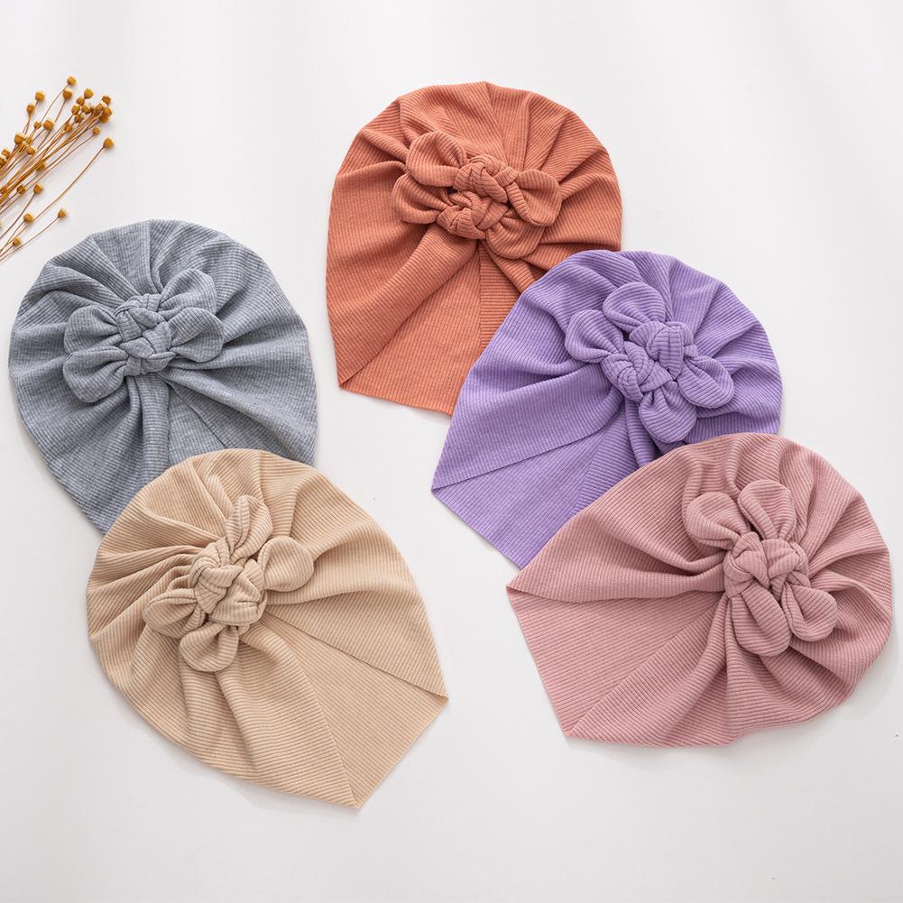 Nuevo gorro infantil con capucha de color sólido transfronterizo con doble lazo, gorro indio para bebé de algodón acanalado suave, gorro fetal para bebéGran precio:¥4.7