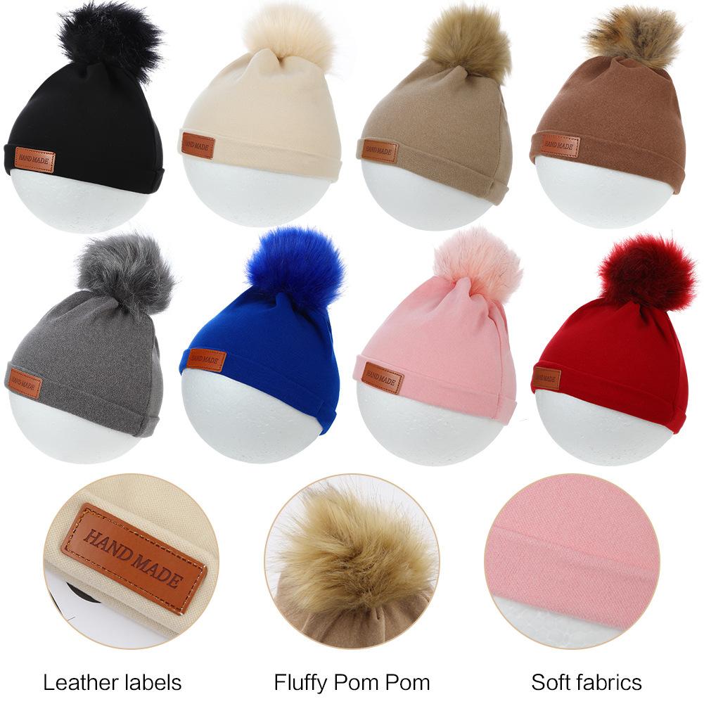 Gorro de punto para niños con nueva etiqueta transfronteriza, otoño e invierno, imitación cachemira, bebé, gorro con pompón de lana grande, gorro cálido para bebéGran precio:¥5