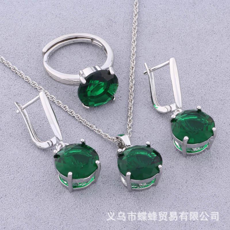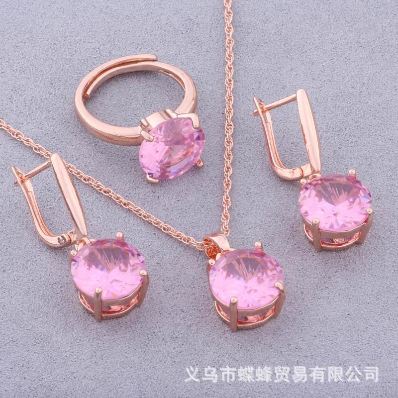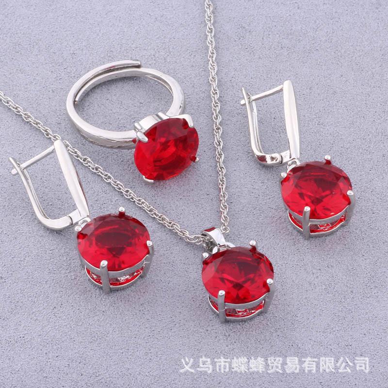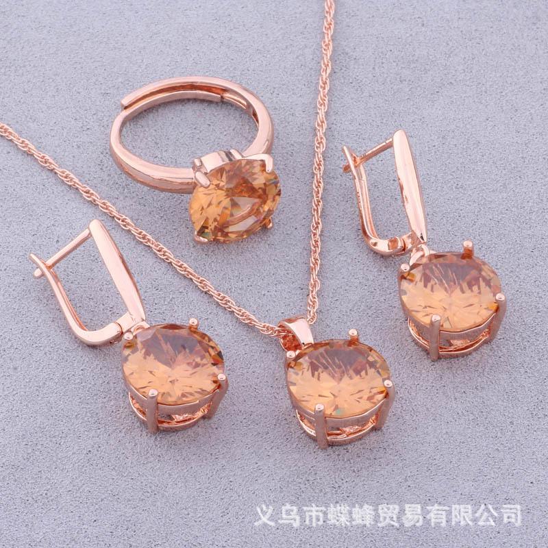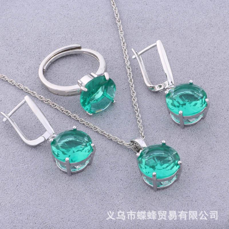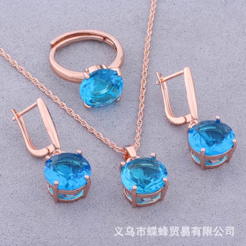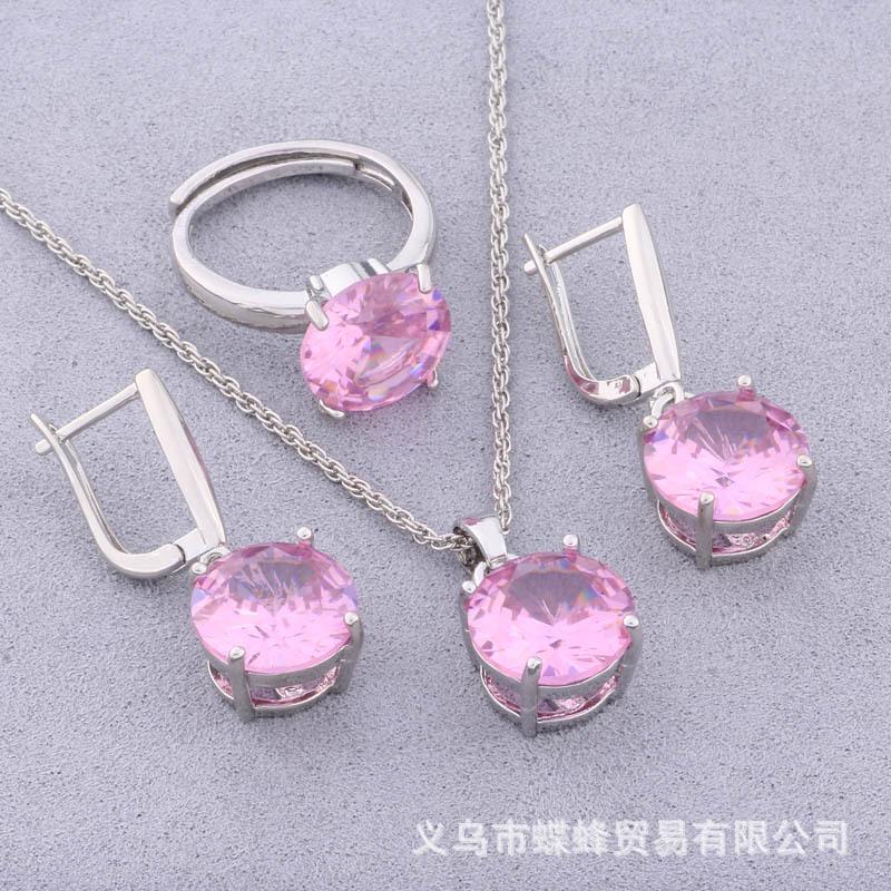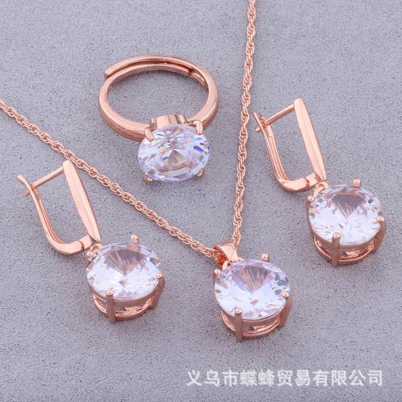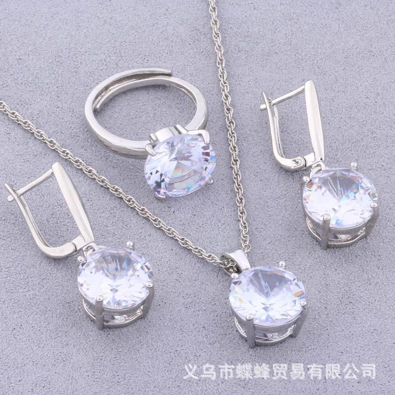 Conjunto de tres piezas para mujer, collar, pendientes y anillo de circonita redonda de 12 mm, clásico, de gran venta transfronteriza en Europa y América.