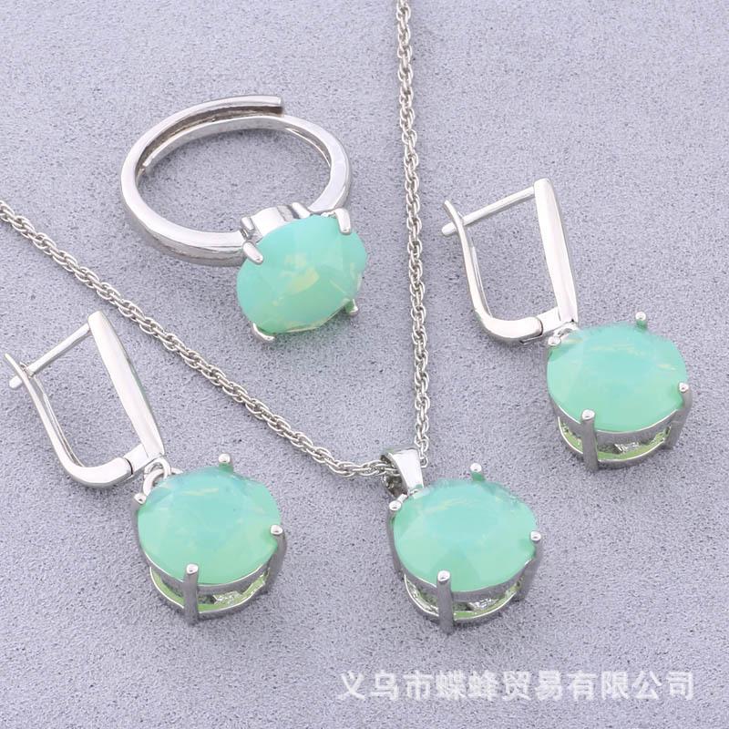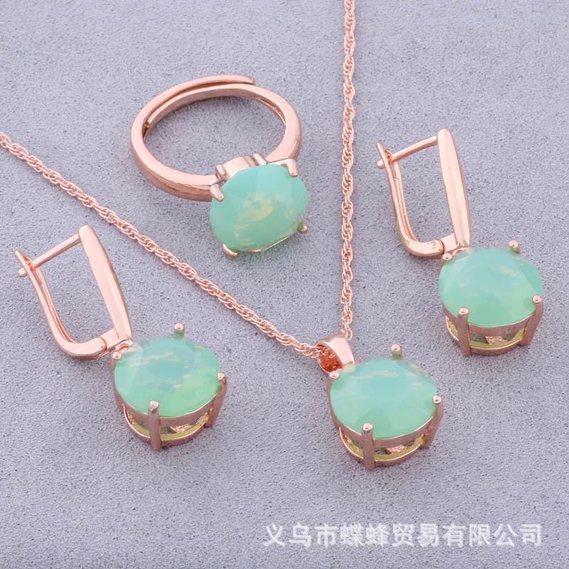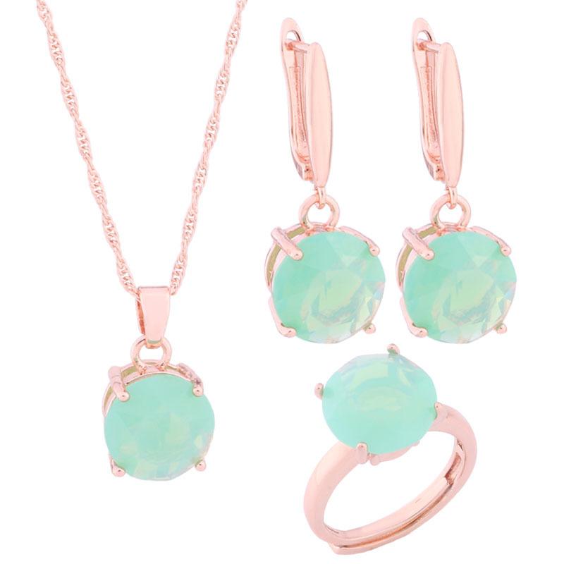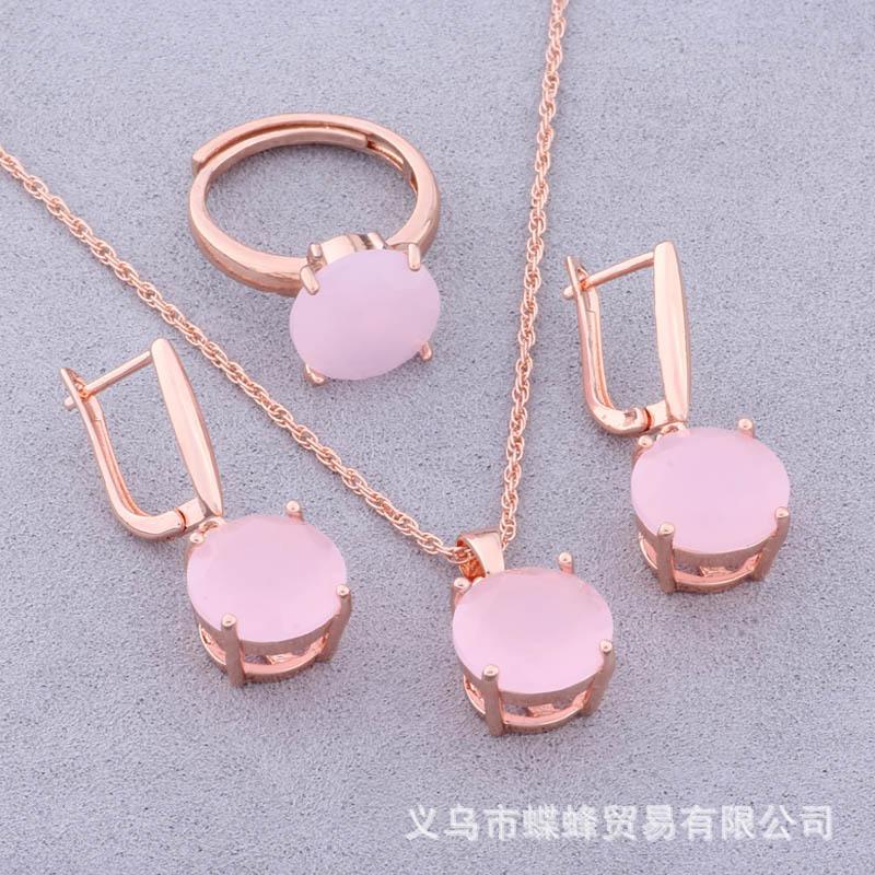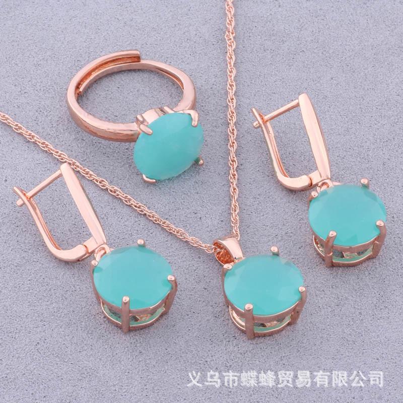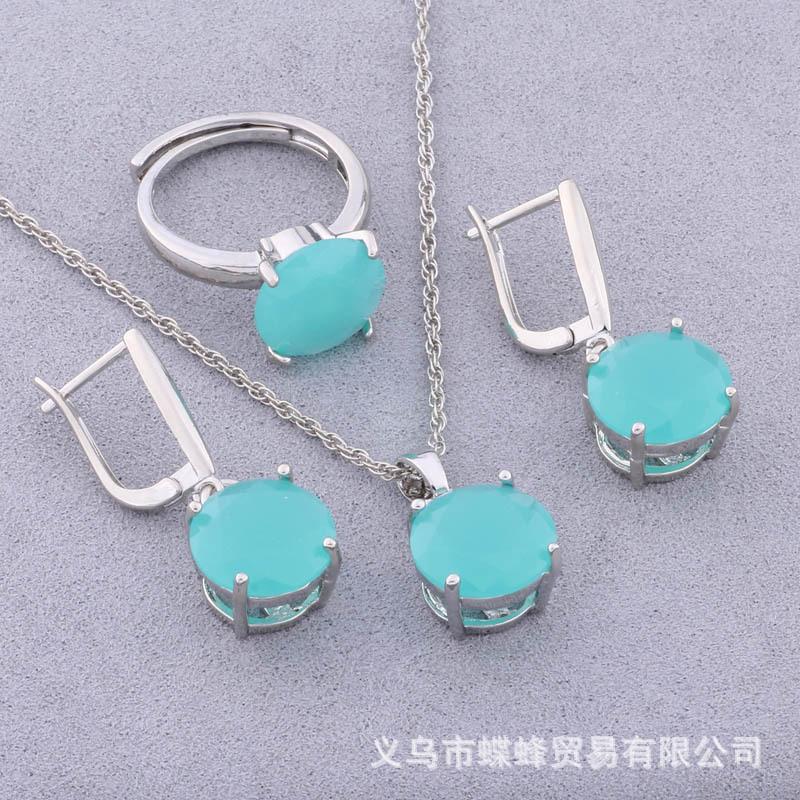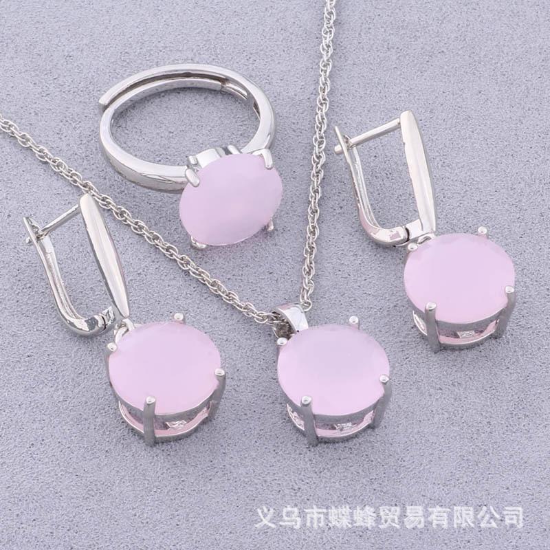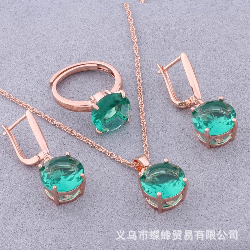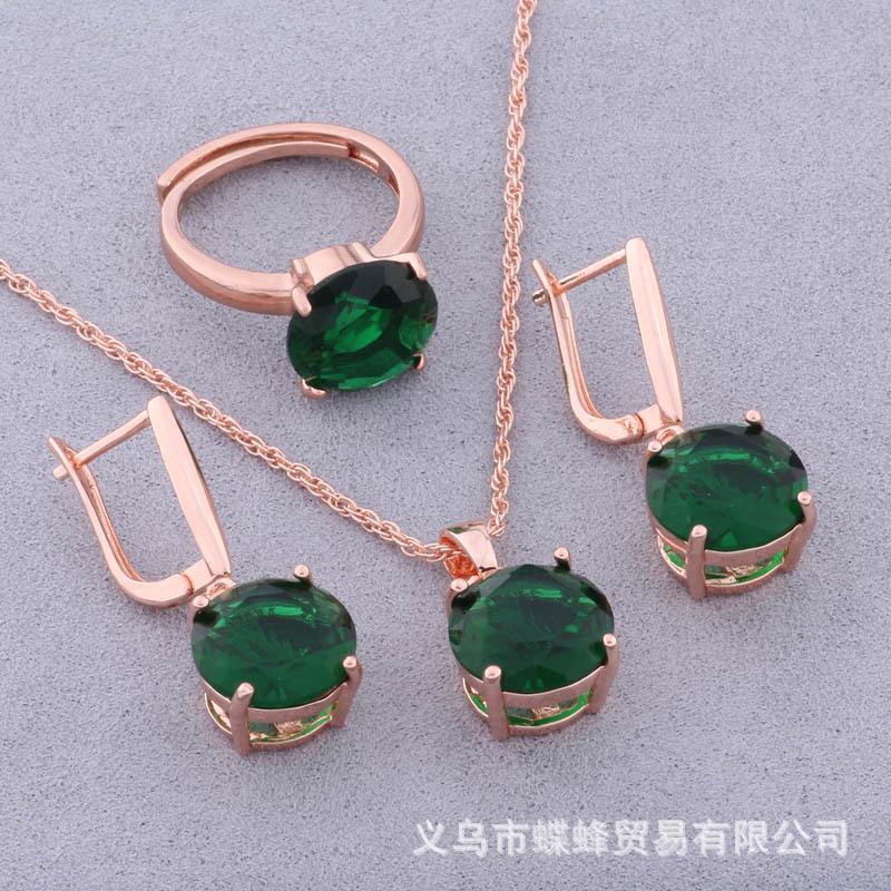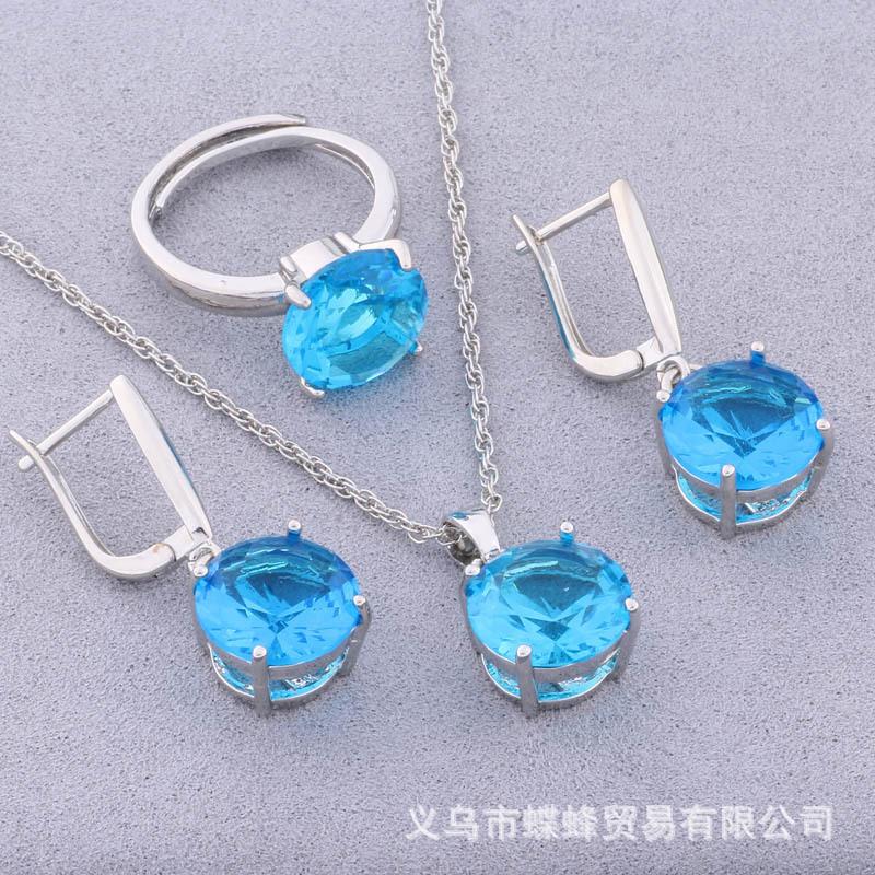 Conjunto de tres piezas para mujer, collar, pendientes y anillo de circonita redonda de 12 mm, clásico, de gran venta transfronteriza en Europa y América.