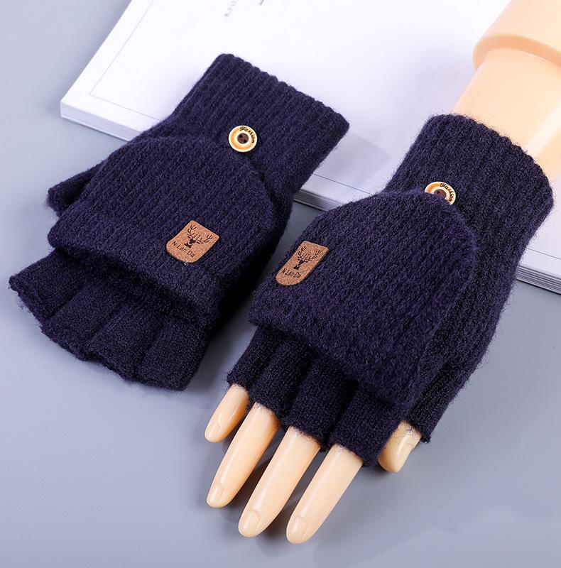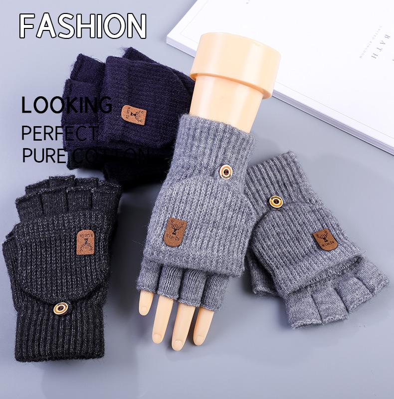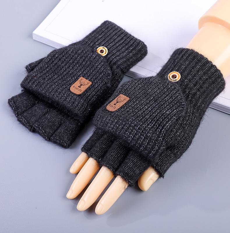 Guantes de medio dedo para hombre, de invierno y de punto, de lana, con dedos, para estudiantes, para escribir, cálidos, para oficina, coreanos, atractivos, de vellón.