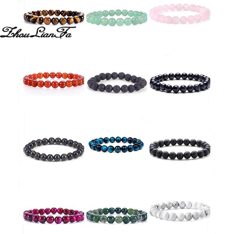 Pulsera Zhou Lianfa de 32 Colores Ágata Cristal Amazónico Ojo de Tigre Moda Simple Una Vuelta Cuenta Redonda Pulsera Transfronteriza Lote