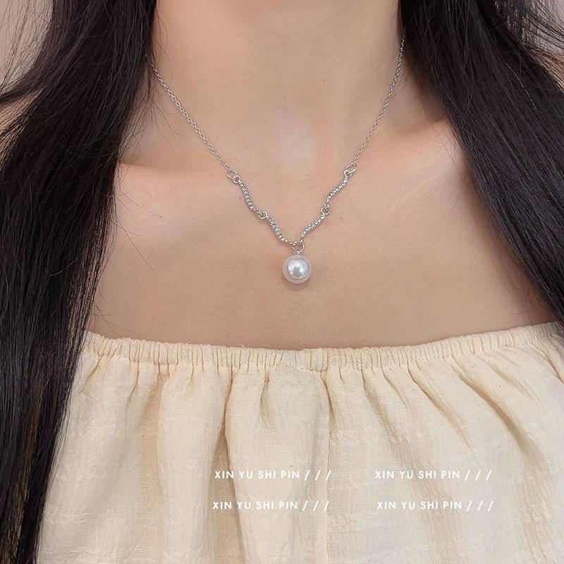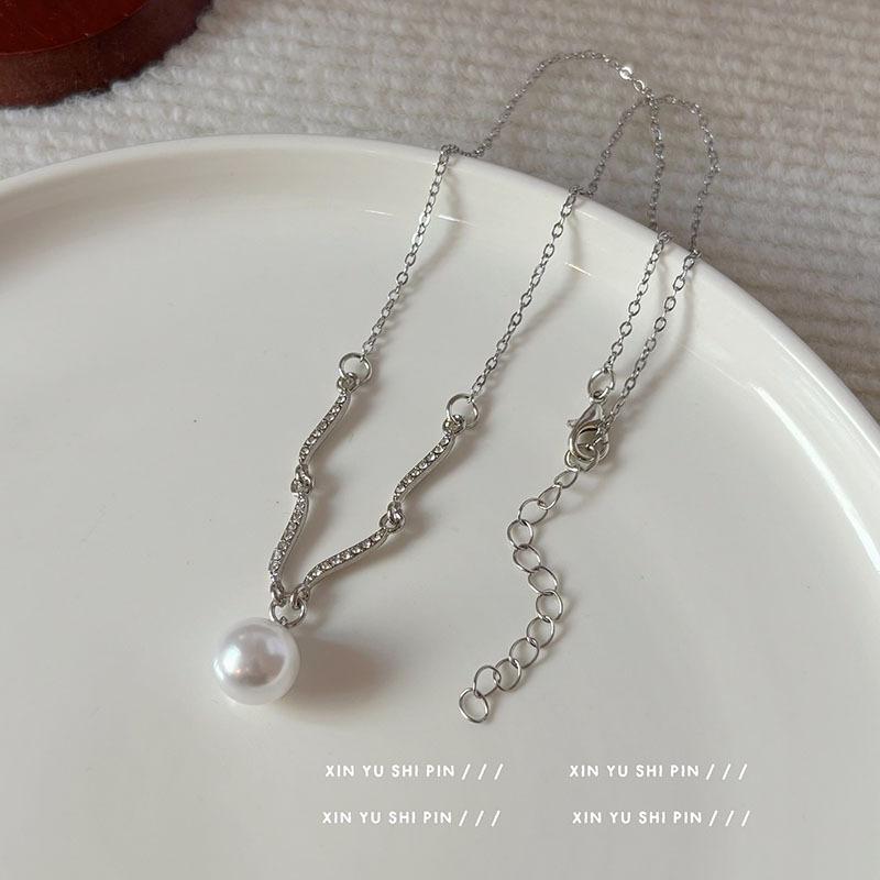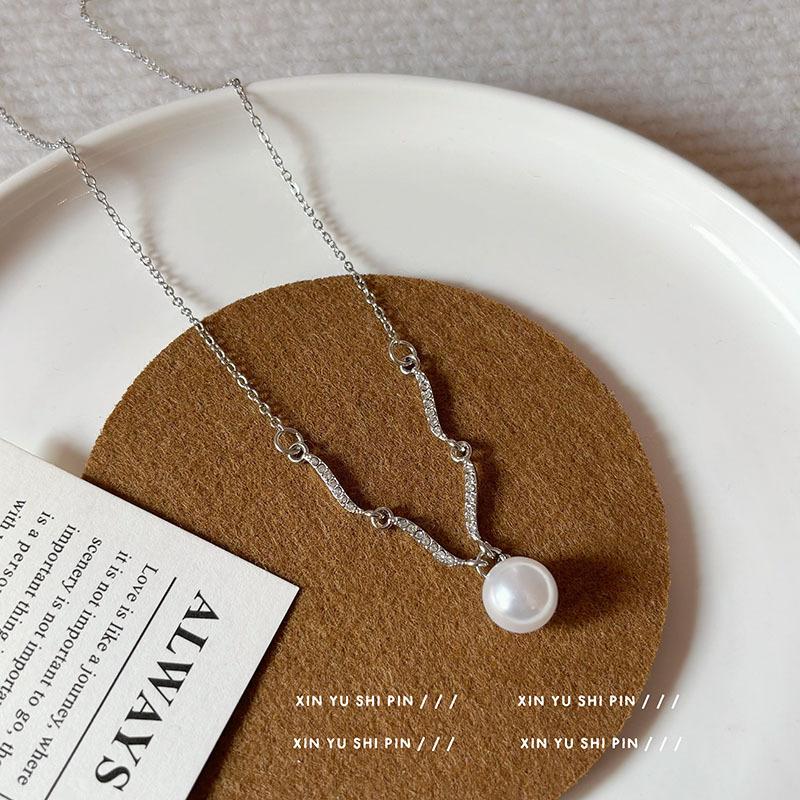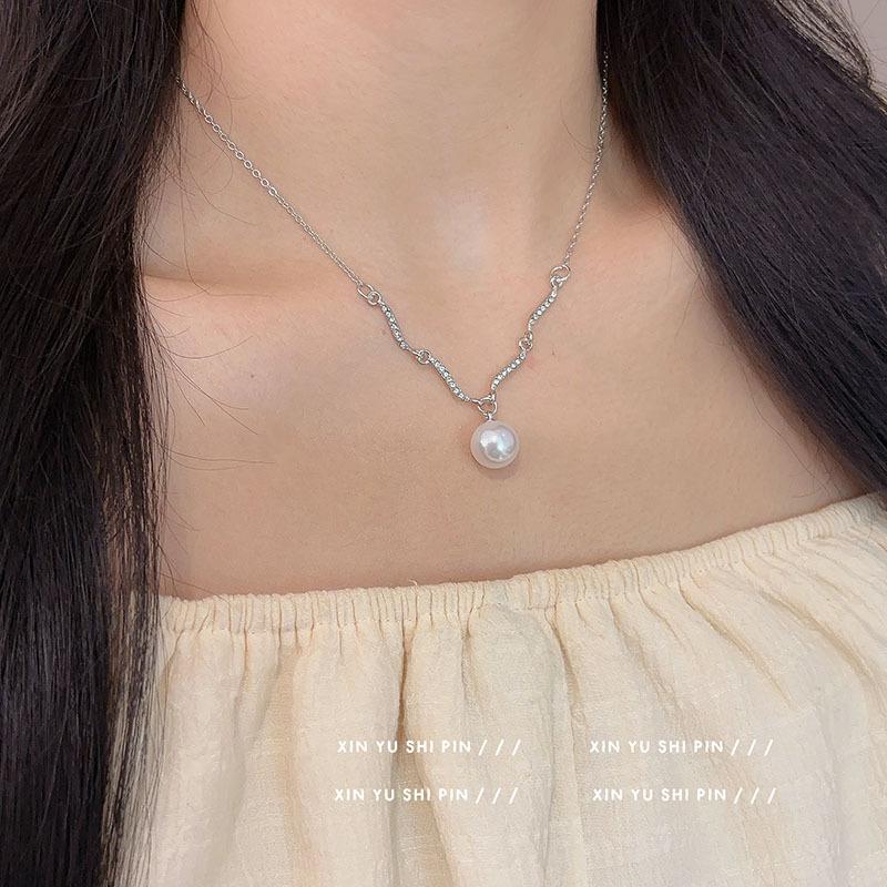 Collar de nicho de lujo ligero y elegante con colgante de perla ondulada de diamante brillante para clavícula, cadena de lana para mujer
