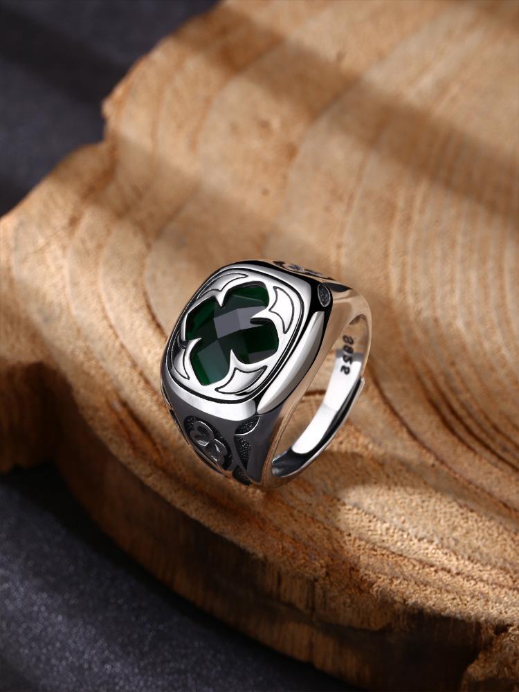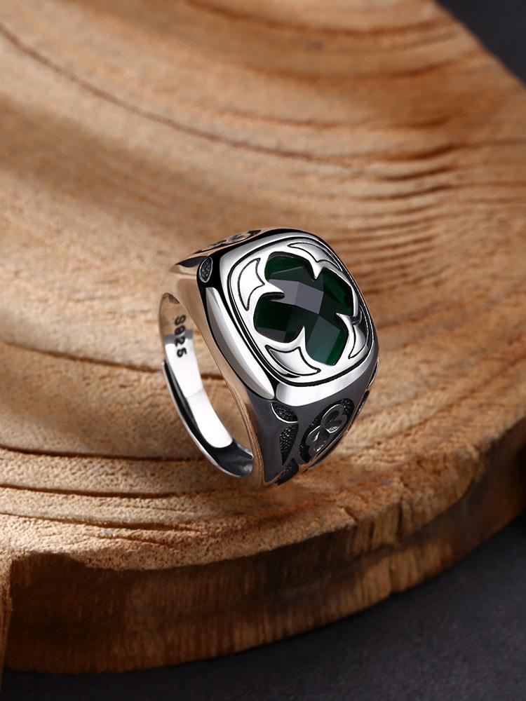 Compra Anillo de plata de ley 925 al por mayor con circonita y trébol de cuatro hojas, apertura de anillo, joyería personalizada de tendencia vintage de plata tailandesa. al por mayor en Joom.pro