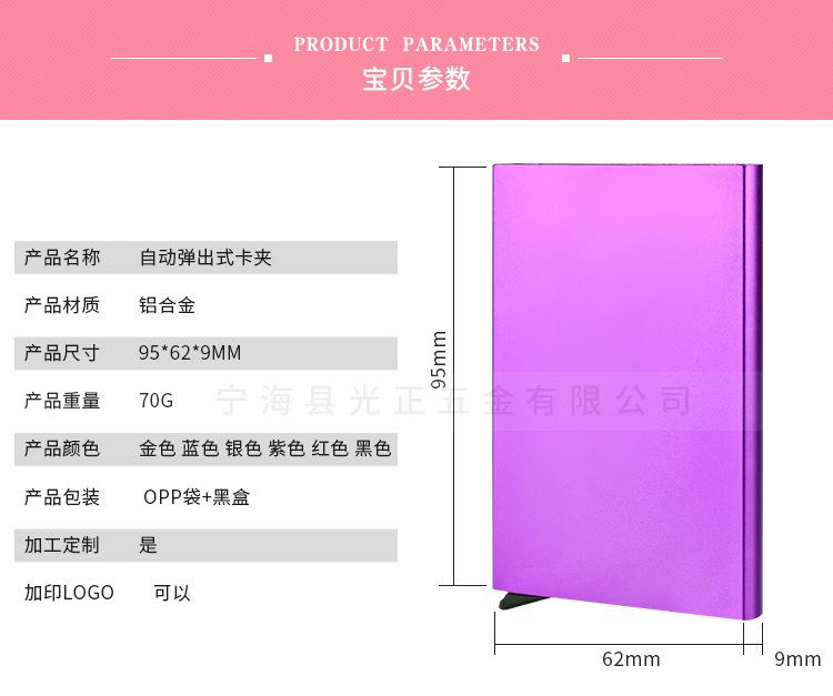 Estuche automático emergente para tarjetas de crédito, estuche para tarjetas de presentación, tarjetero de aleación de aluminio y metal anti-RFID, tarjetero bancario, tarjetero metálico