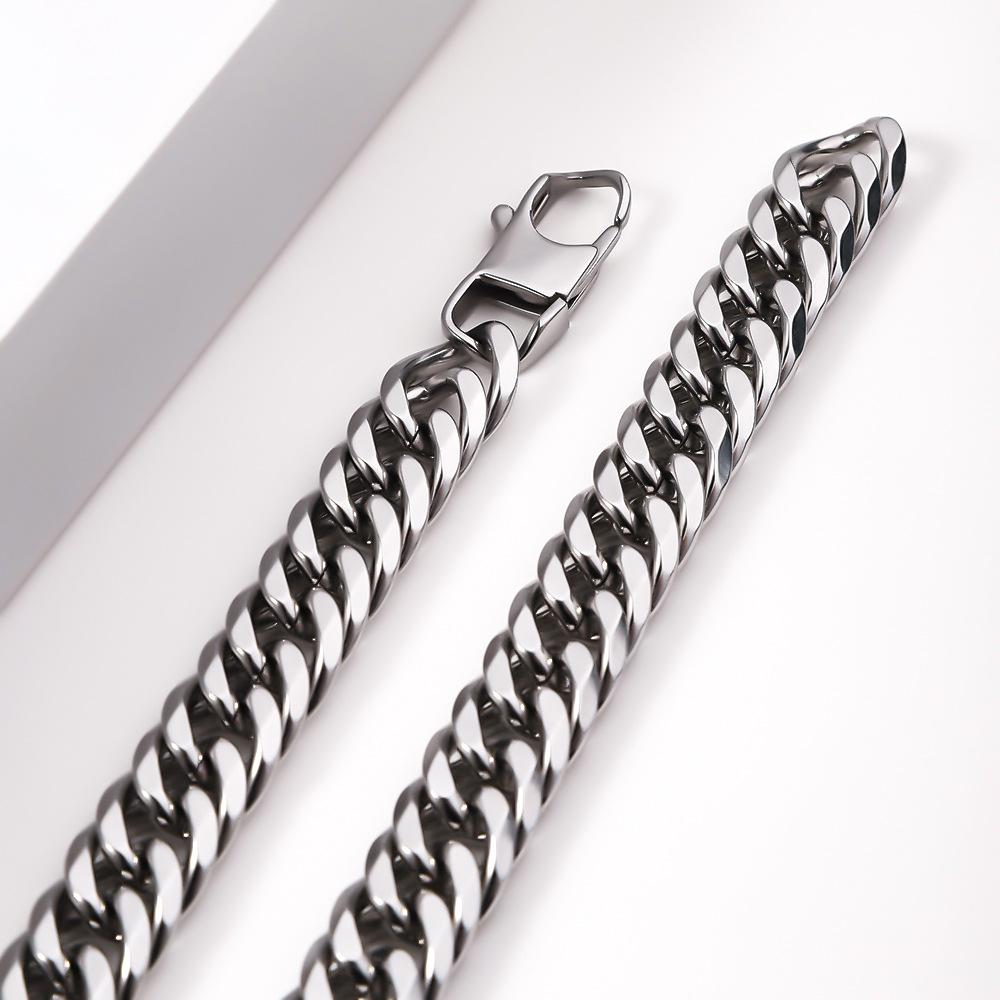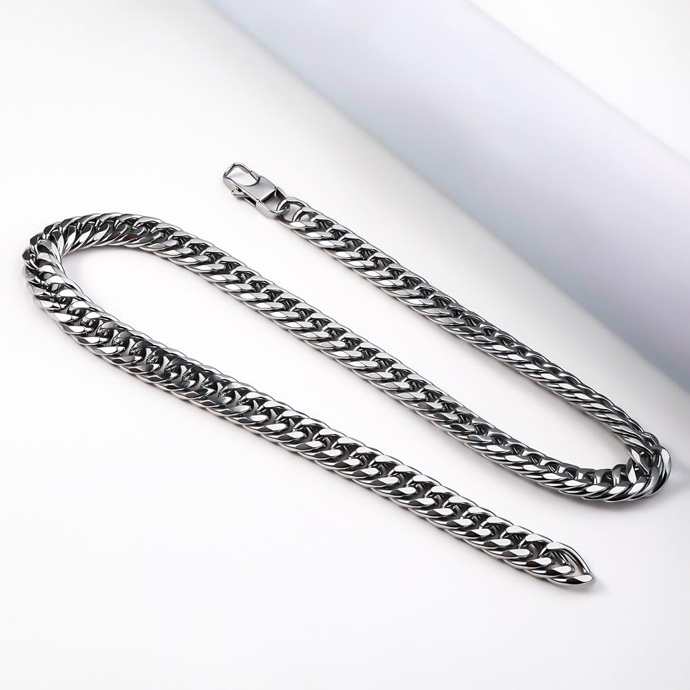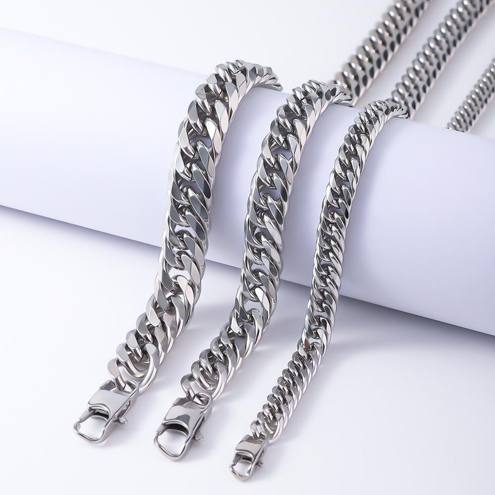 Collar de Acero de Titanio Tejido Doble Pulido de Seis Lados Cadena Simple Personalizada Transfronteriza para Hombre que No se Desvanece Cadena Cubana Pulsera de Acero Inoxidable