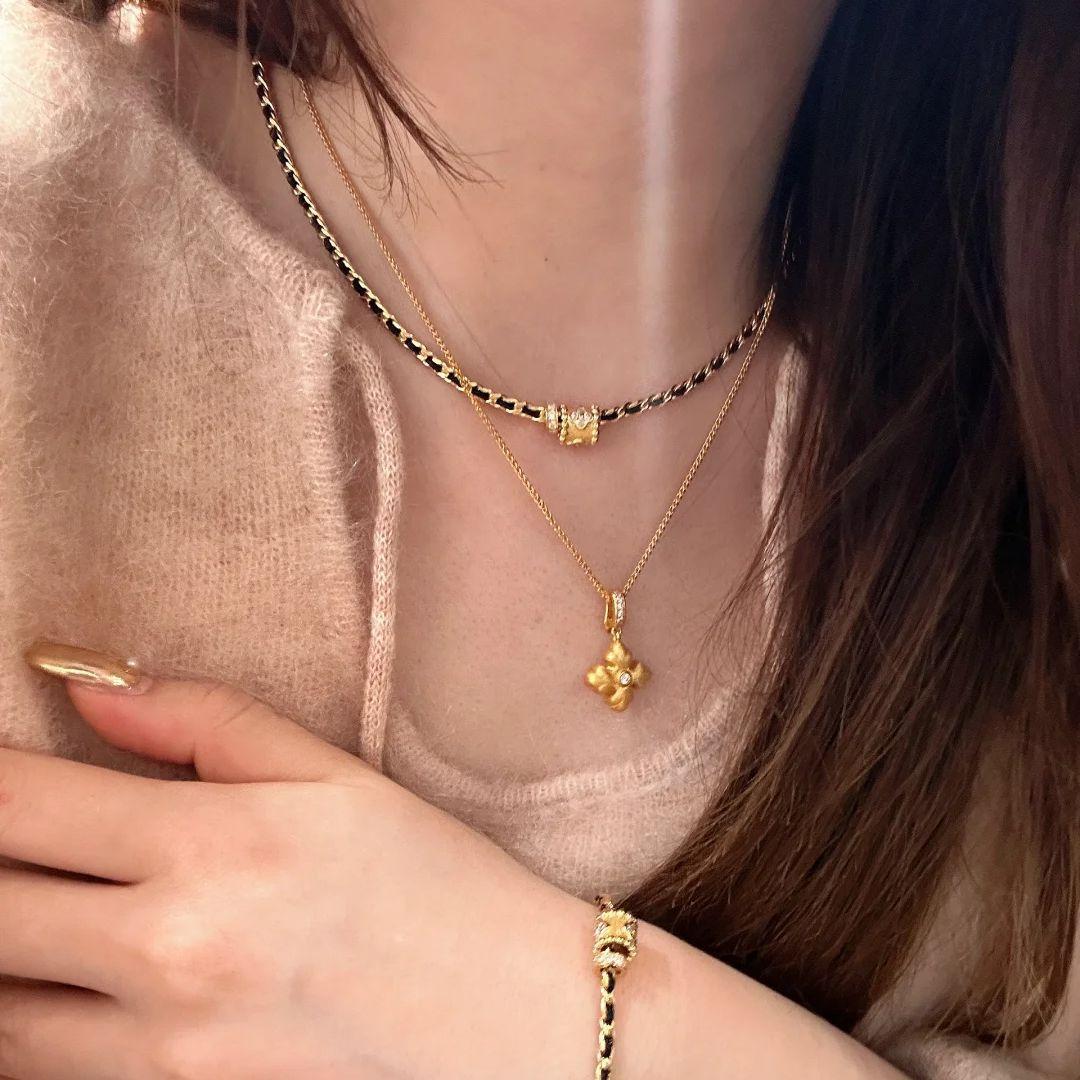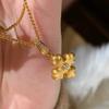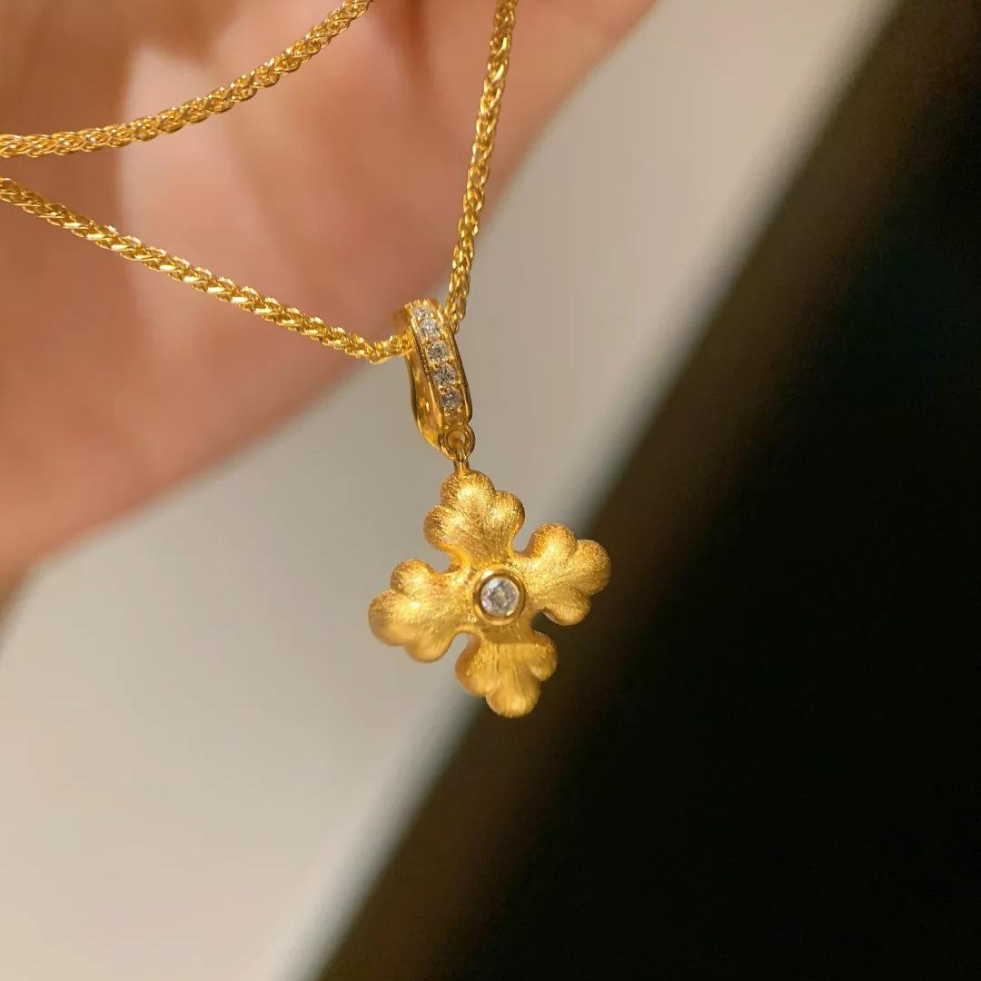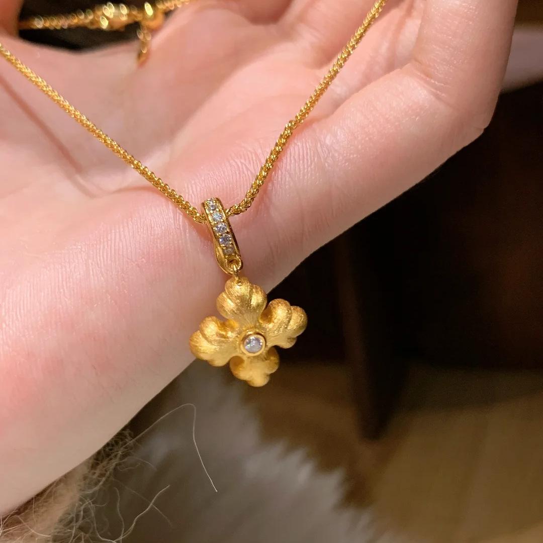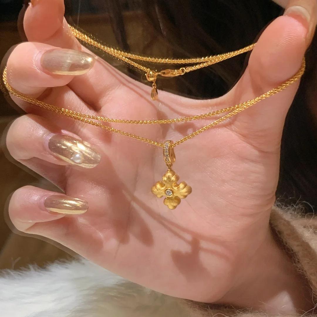 Collar de lujo con flor de iris cepillada, ligero y moderno, con diseño de nicho, colgante de trébol de cuatro hojas con incrustaciones de diamantes de alta gama, cadena para clavícula para mujer.