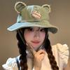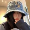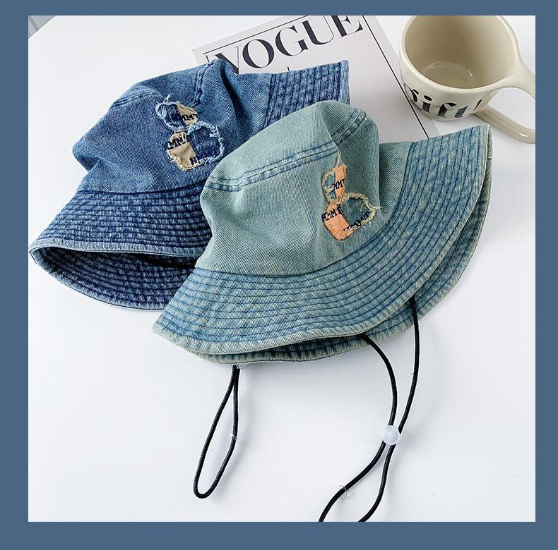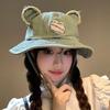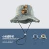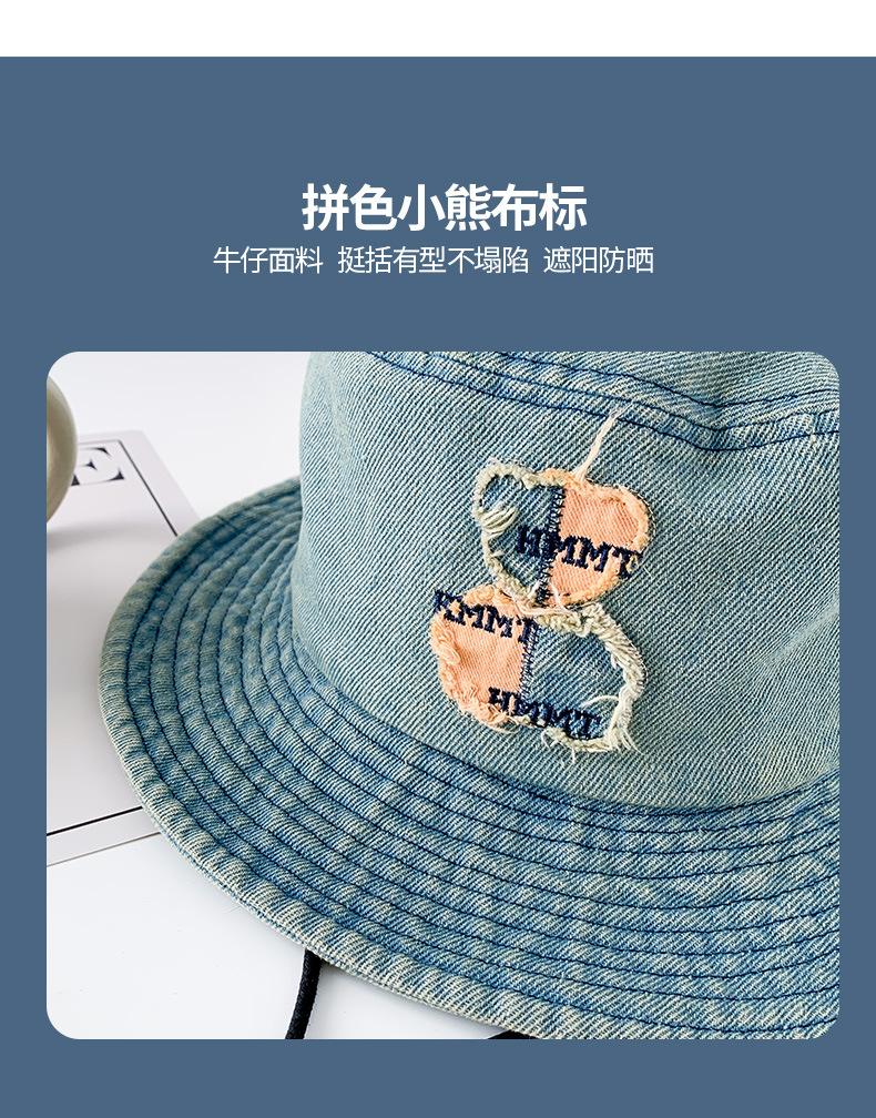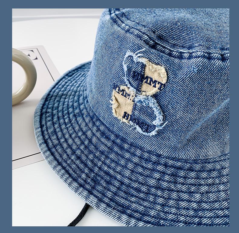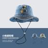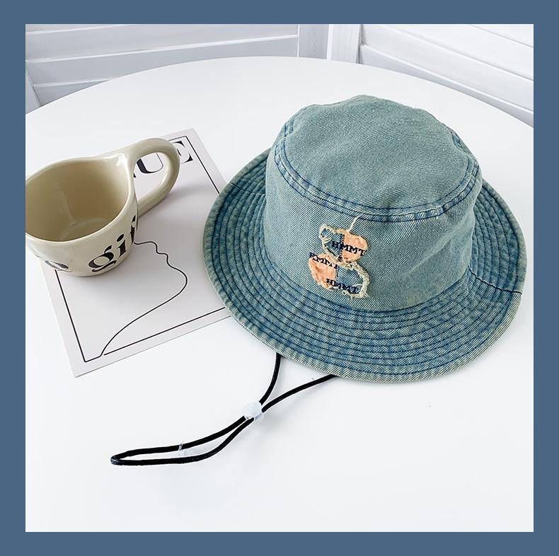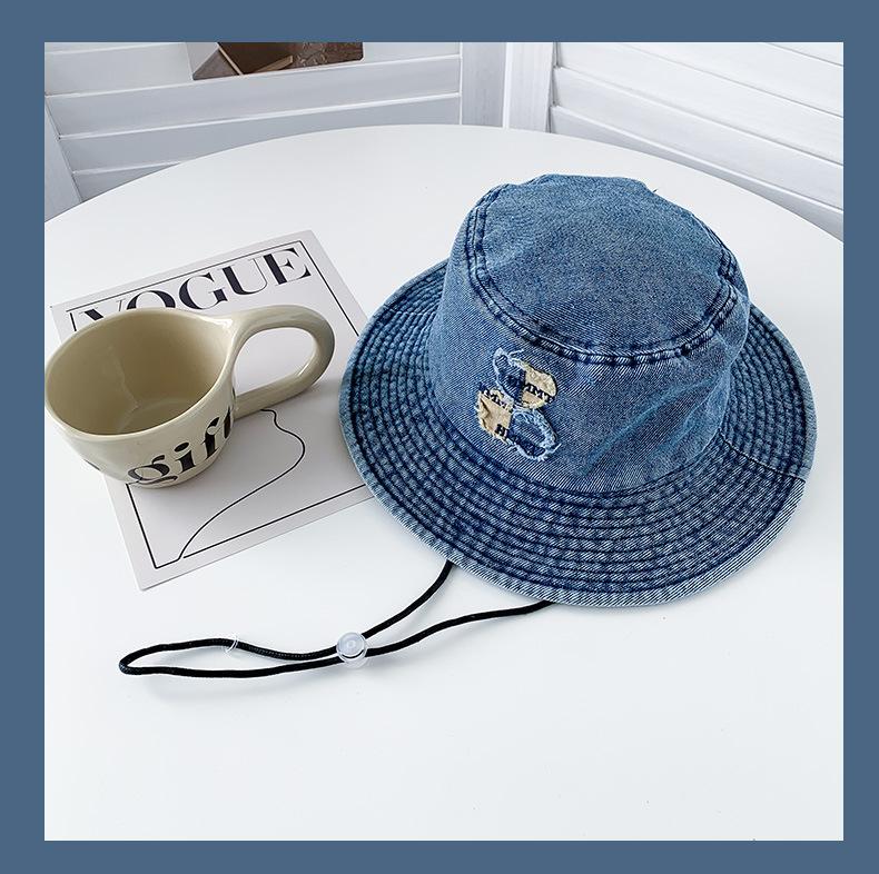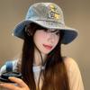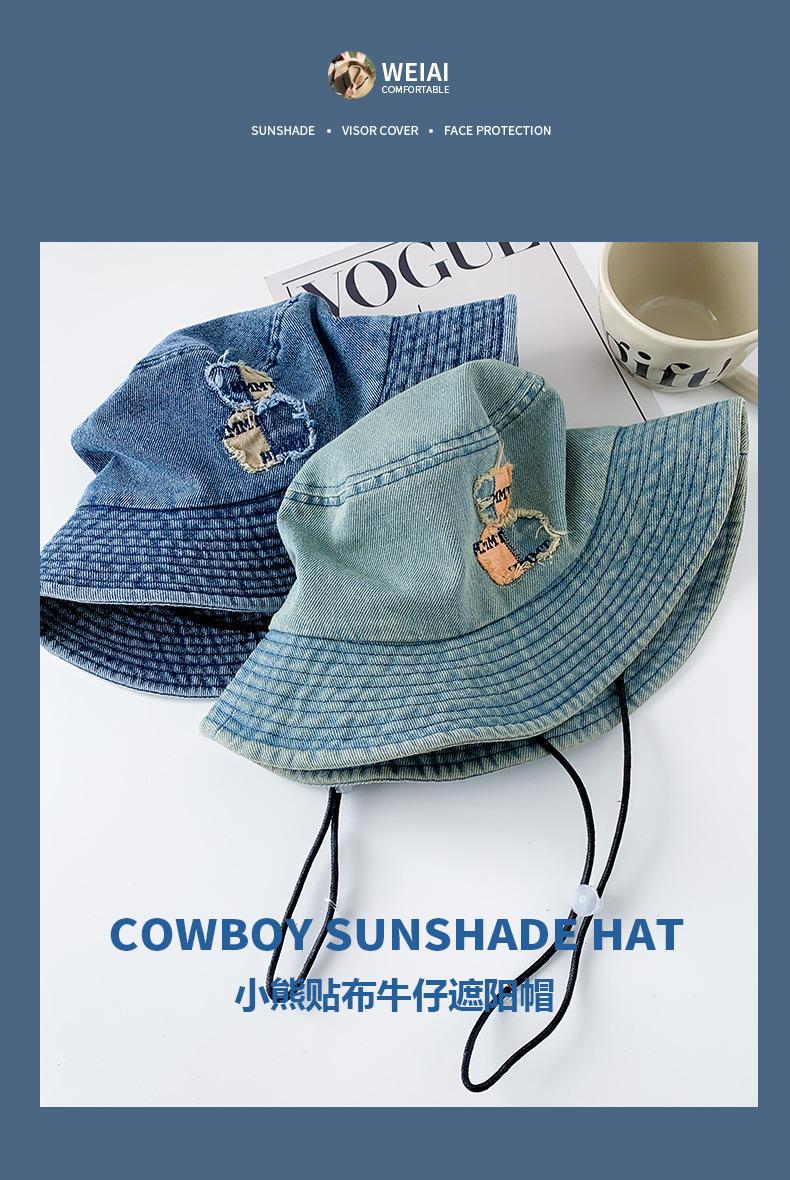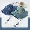Sombrero de Pescador de Mezclilla con Oso para Mujer Primavera y Verano Nuevo Estilo Japonés Combinable Cabeza Grande Protección Solar Sombrero de Cubo Protector Solar Vintage Cara Brillante