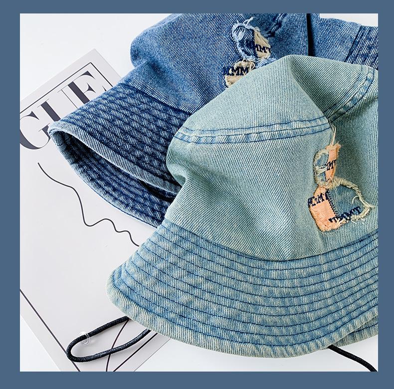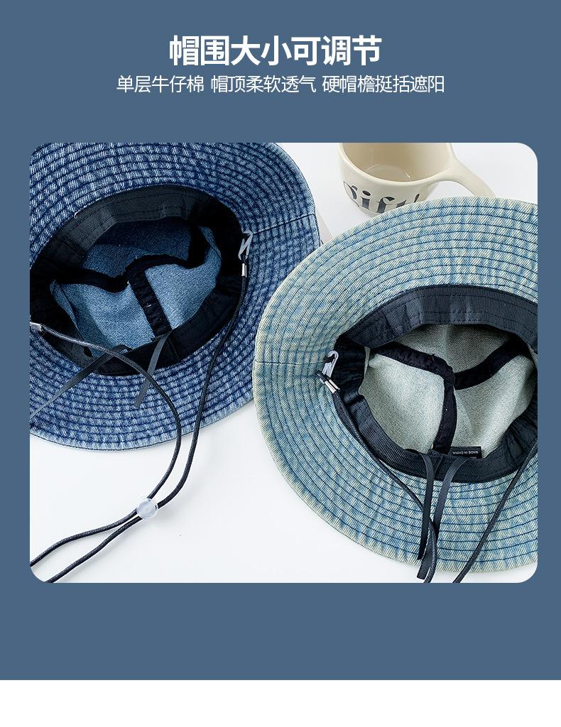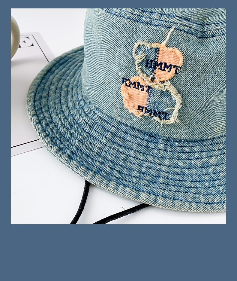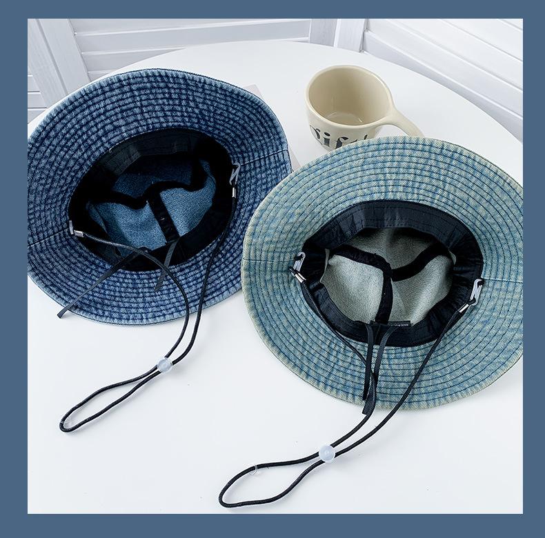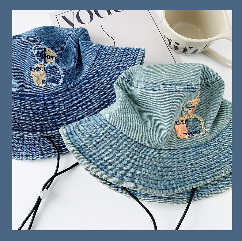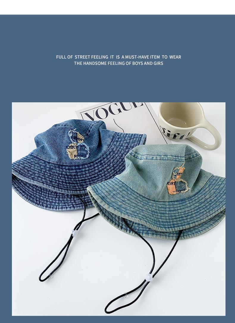 Sombrero de Pescador de Mezclilla con Oso para Mujer Primavera y Verano Nuevo Estilo Japonés Combinable Cabeza Grande Protección Solar Sombrero de Cubo Protector Solar Vintage Cara Brillante