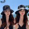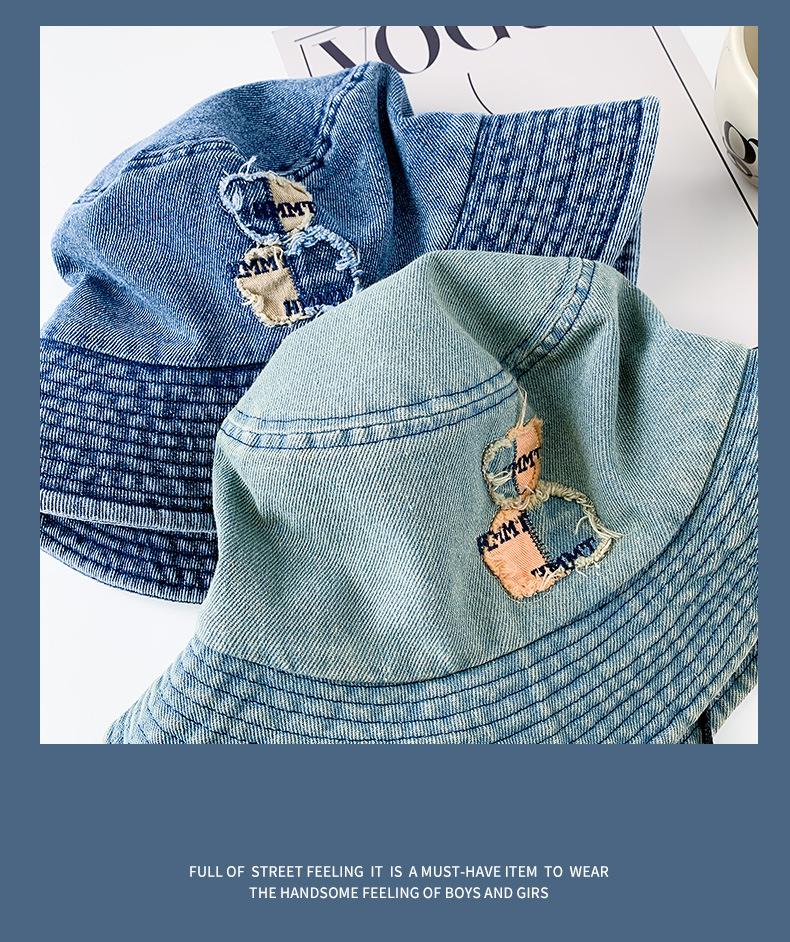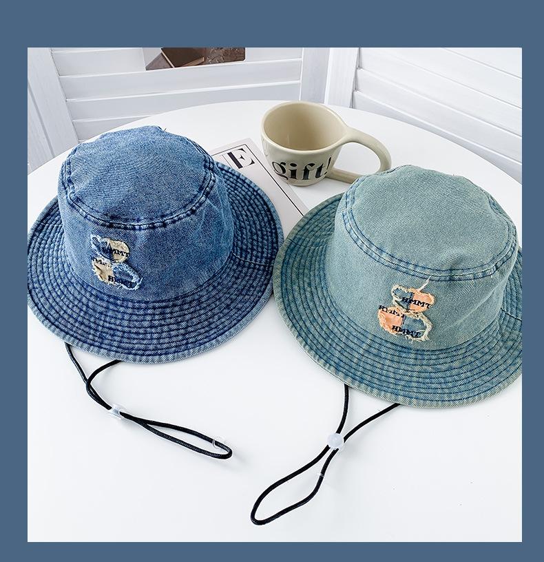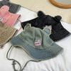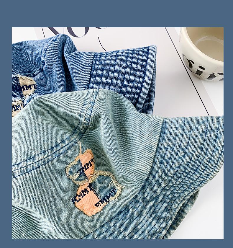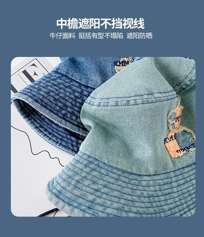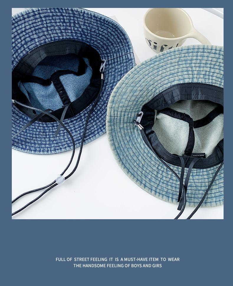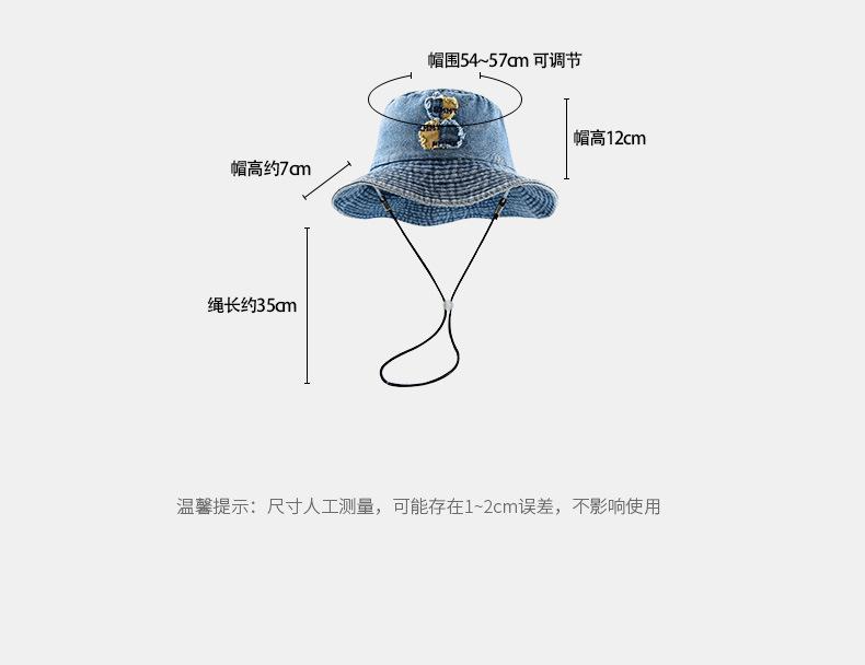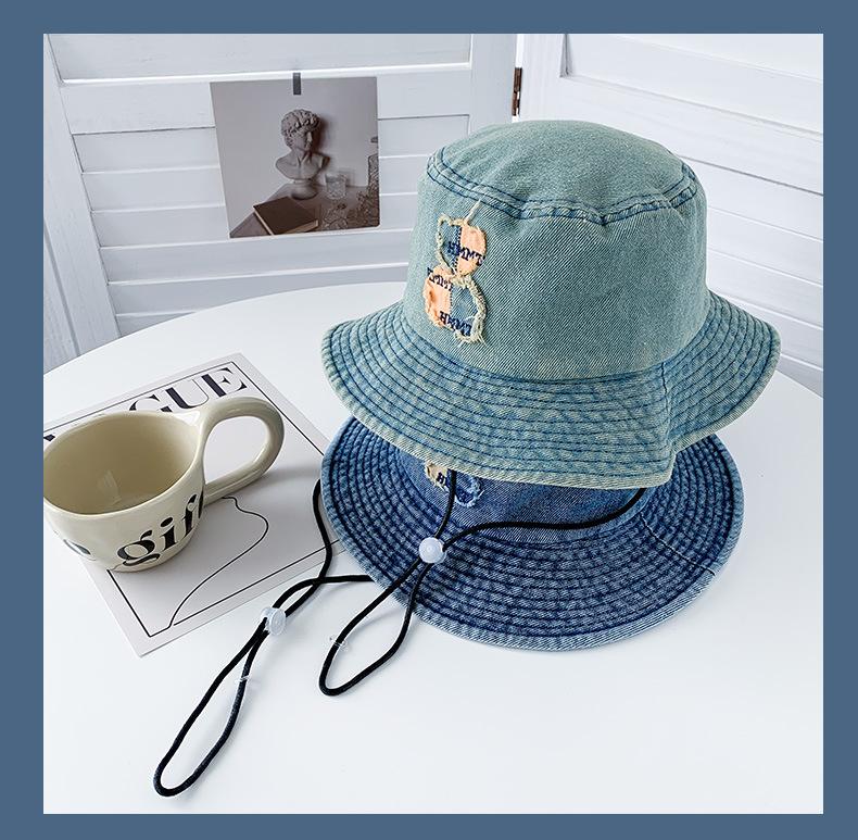 Sombrero de Pescador de Mezclilla con Oso para Mujer Primavera y Verano Nuevo Estilo Japonés Combinable Cabeza Grande Protección Solar Sombrero de Cubo Protector Solar Vintage Cara Brillante