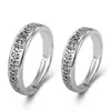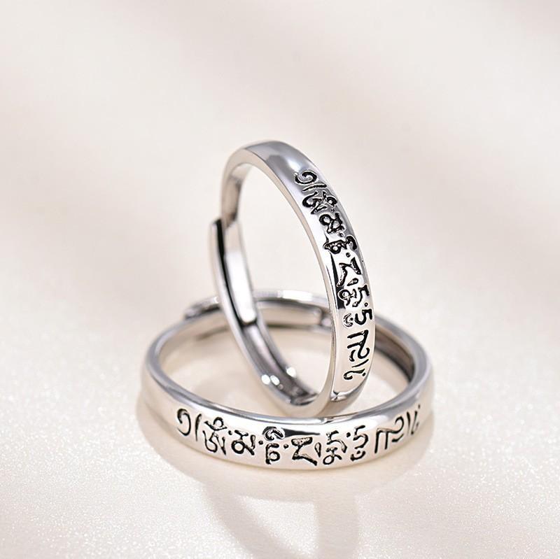 Anillo de pareja mantra de seis palabras Xizang retro plata tailandesa envejecida anillo de boca abierta para hombre y mujer apertura simple ajustable