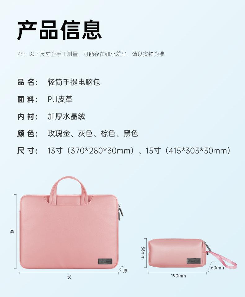 OPP bag packaging computer handbag 14 inch women's high-end sense bag leather bag macbookair13.3 inch laptop bag Huawei 14 inch